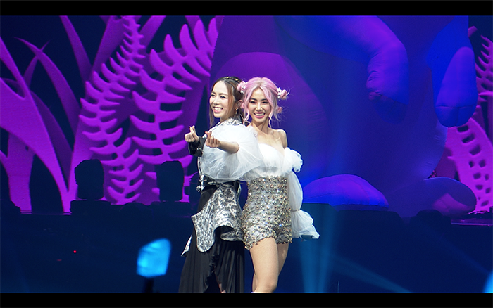 當蔡依林在唱《說愛你》這首歌之後,鄧紫棋突然現身跟他一起合唱,讓現場所有粉絲都嗨到瘋掉,現場所有粉絲們也興奮到跟著他們一起唱,兩人還在台上互相介紹對方,還邊唱歌邊跳舞,互動的方式非常可愛,讓粉絲們朝著兩位天后獻上滿滿尖叫聲!