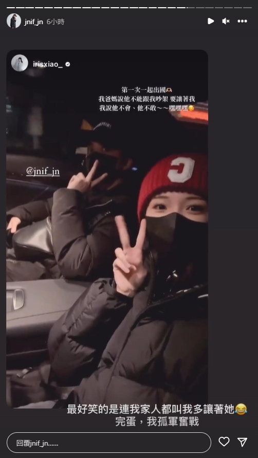 此外,小倆口在3日凌晨飛往日本旅遊,也是兩人交往後第一次出國,臨走前,傑恩的父母還交代「多讓著她」,他笑說:「完蛋,我孤軍奮戰!」期間也分享不少閃照,到當地後,兩人還直接拍起舞蹈影片,開心興奮之情溢於言表。