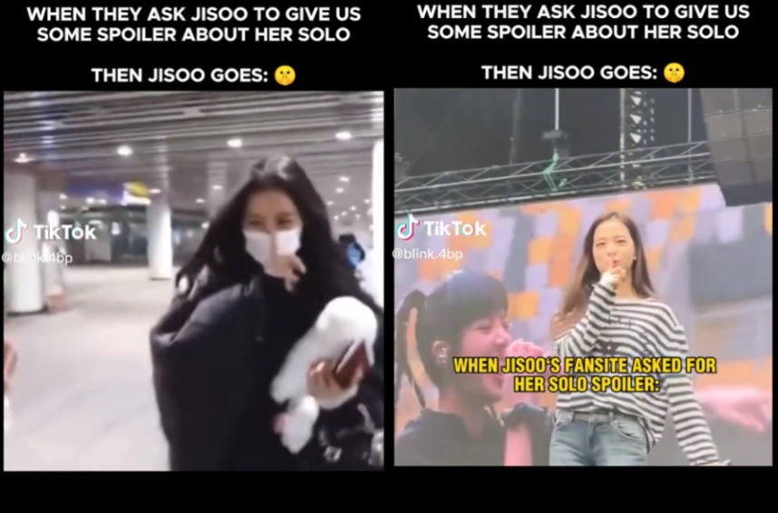 雖然尚未能確定Jisoo是否是真的透露了SOLO動作,不過TikTok上有熱心網友翻出Jisoo過去在韓國被問到SOLO時也是比出「噓」,月初在吉隆坡演唱會彩排時也是做出同樣的動作。值得一提的是,其實高雄場不只「噓」引發猜測,彩排時4位成員同步做出滑步動作退場也被認為可能是暗示!