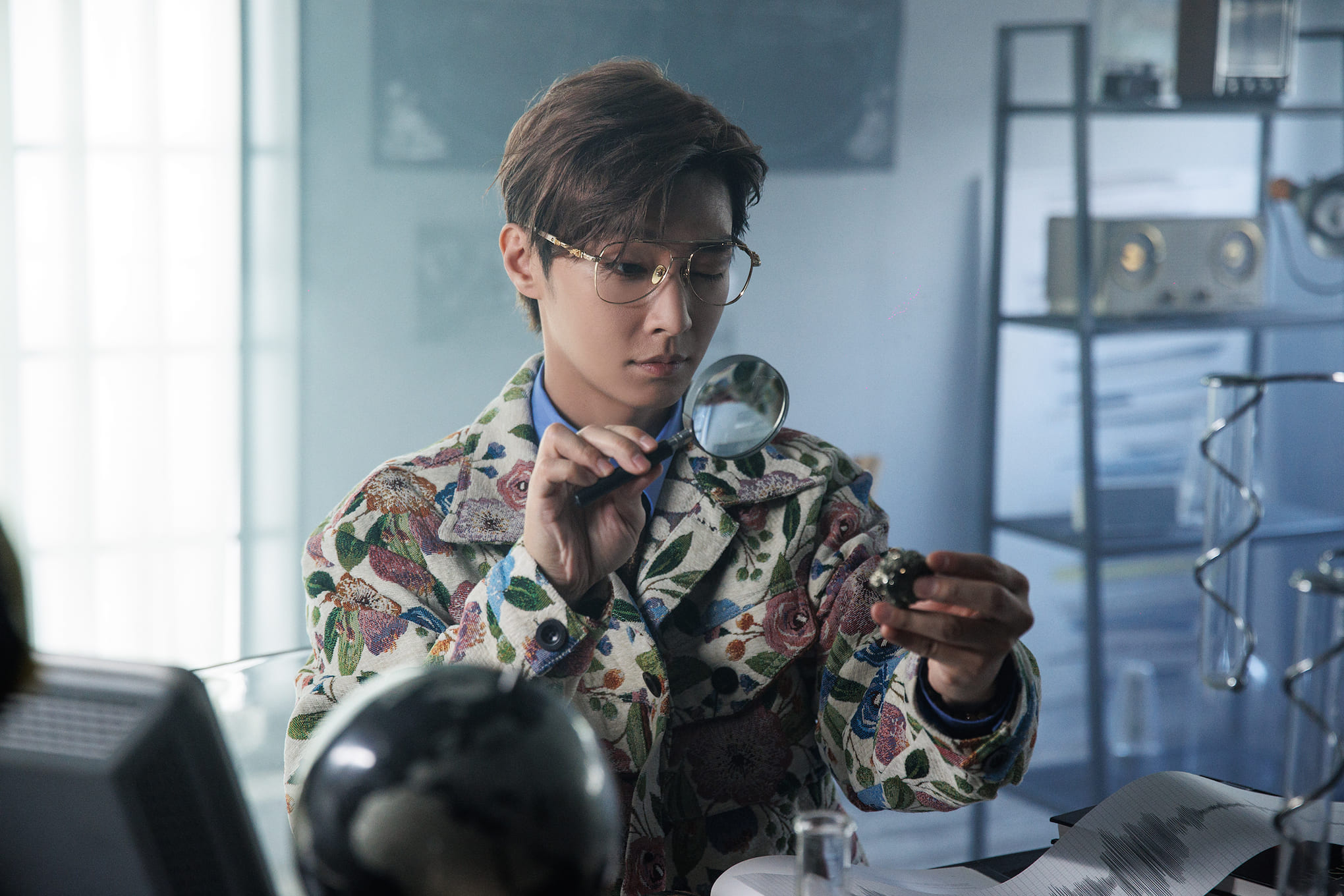 〈地質學家〉MV特別邀請台大地質學系畢業的知名導演黃子然執導拍攝,果然非常有梗!以「下雨地震說」為故事主軸,炎亞綸以一襲重工刺繡復古外套搭配襯衫和金框眼鏡,展現出時尚地質學家形象。這次的MV最特別的地方就是充滿炎亞綸風格,如同他平時在臉書上和粉絲直接對話互動,這次連MV都要和觀眾透過QR Code互動!