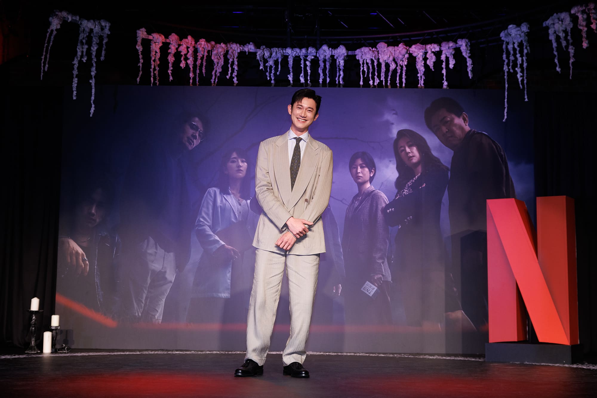 由於兇手是誰是本片最大雷點,被問及身邊人若要求先暴雷,是否會先告知,柯佳嬿和吳慷仁都表示絕對守口如瓶,柯佳嬿說:「我是不會先講的,就算家人說想知道我也不會講。」吳慷仁則笑說要帶著今天記者會上「禁止暴雷」的牌子在身上,有人問就舉起來。由於在Netflix全球上線,會有許多種語言配音,吳慷仁更搶先看了日文配音版,他笑說:「看別的語言配音版本很像在看別部戲,而且日文配音版的聲音讓郭曉其(角色名)感覺更帥,走更英挺型的路線。」他也很期待之後可以看到更多語言的版本,還現場嘗試泰文發音,讓柯佳嬿非常驚訝,直讚很適合角色。