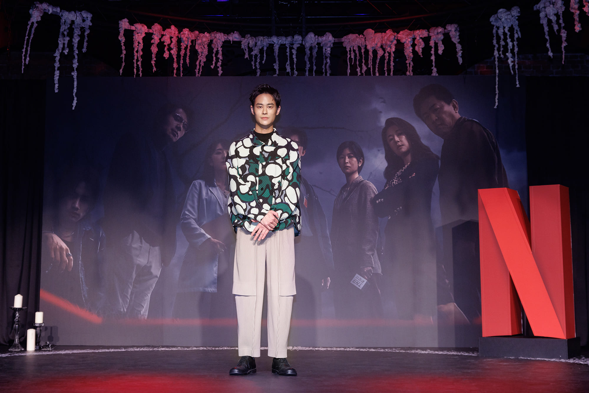 金獎主創團隊製作人曾瀚賢、湯昇榮與導演張榮吉、張亨如攜手,影帝影后組合主演吳慷仁、柯佳嬿、庹宗華、江宜蓉、夏騰宏華麗盛裝出席,記者會現場更還原出影集中的關鍵犯罪場景,讓主創、演員共同參與影集中連續殺人犯的「惡的創作」。製作人曾瀚賢表示:「2020年我們有了「誰是被害者」,現在我們挑戰不同的敘事帶來《模仿犯》,這是一部試圖顛覆我們自己的創作慣性,也企圖藉由名著改編挑戰國際的話題作,劇裡有你喜歡、討厭、害怕、恐懼又堅強的人性,像極了我們身邊的人事物,這是一部在觀看過程,能一起哭一起笑,一起討論關於在這混亂的時代怎麼安放我們自己的故事,《模仿犯》是一個積累數年,產業蓄勢待發,才推動而生的滿滿誠意作品。」