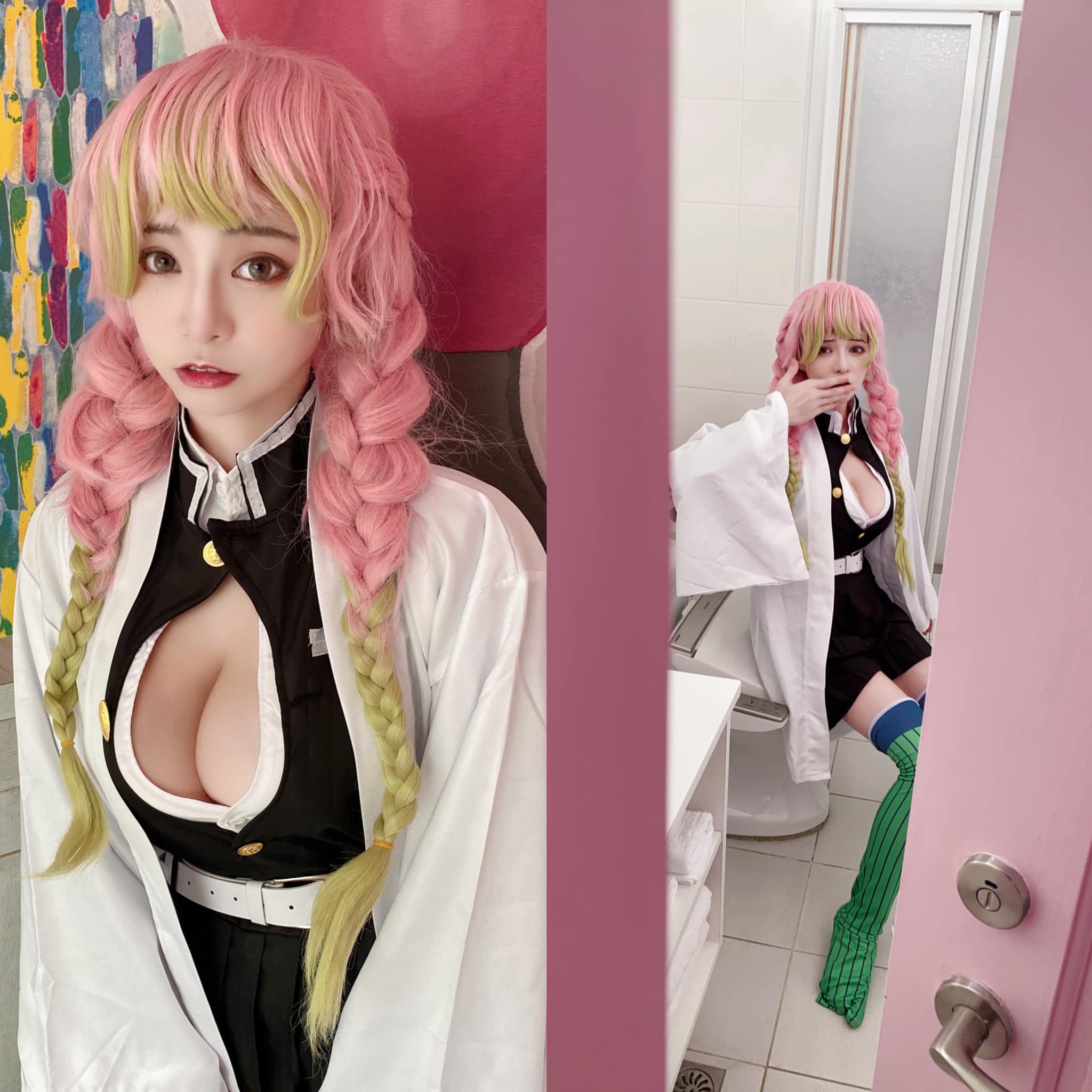 不僅如此,其中一張COS照還故意坐在馬桶上,擺出一副驚嚇的表情,似乎是想營造上廁所被闖入的情境,她還寫下:「甘露寺蜜璃,戀柱私密流出。」貼文曝光後,網友們紛朝聖目睹風采並表示:「身材神還原」、「為了溫泉趕快留言」、「戀愛了、戀愛了!」