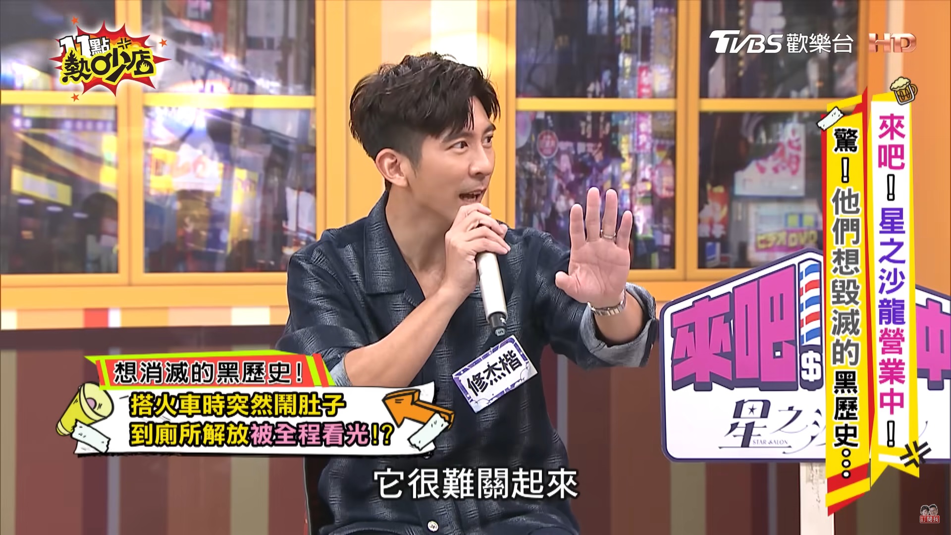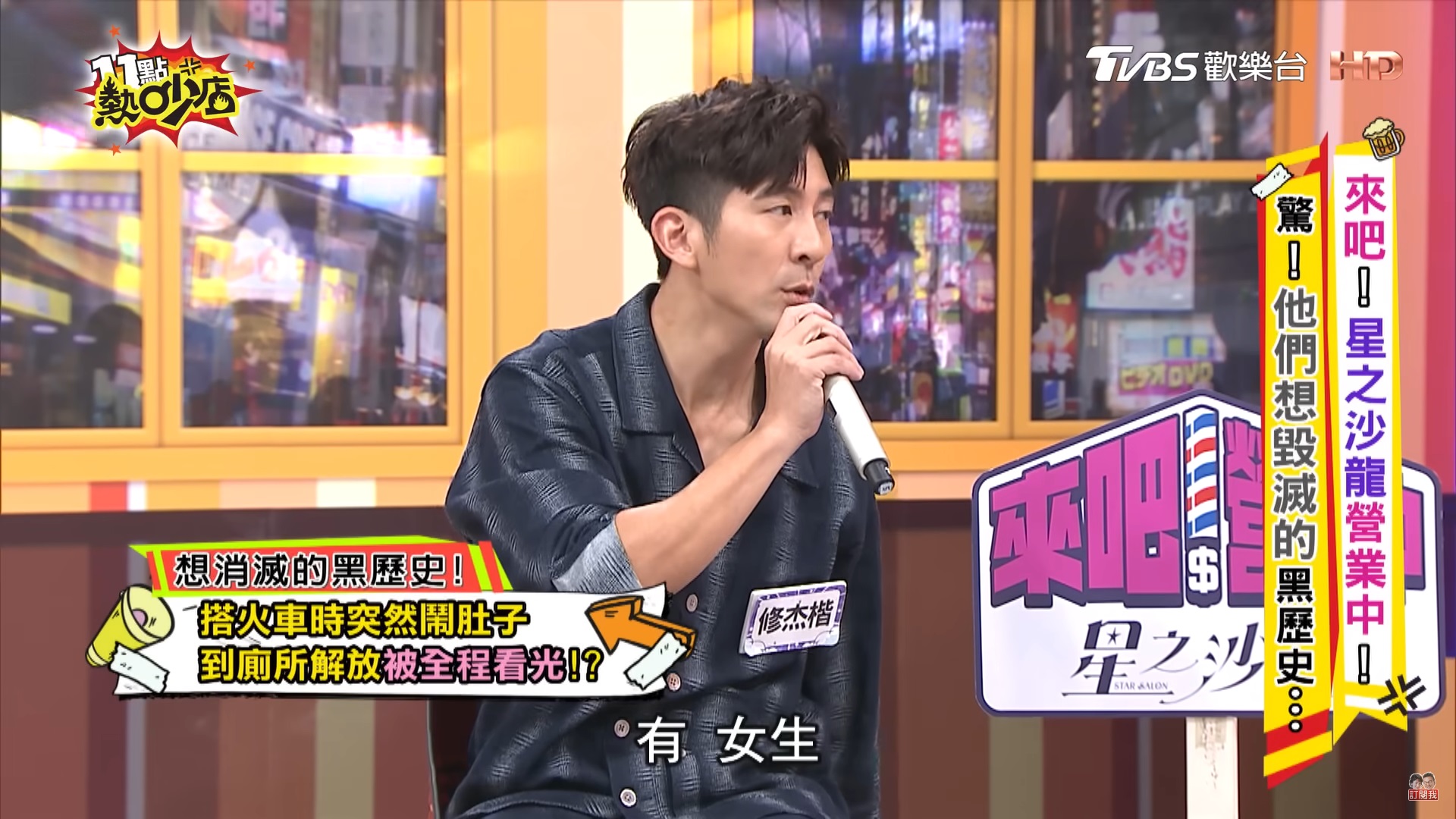 實境節目《來吧!營業中2》的成員們日前在節目大聊「黑歷史」,楊銘威透露高中曾被教官抓到帶三級片的DVD到學校,還被公諸於世;修杰楷自爆學生時期曾發生過上廁所忘記鎖門,沒想到竟被女乘客全部看光,讓他超尷尬!更分享所有男生都會感到超害羞的一件事。