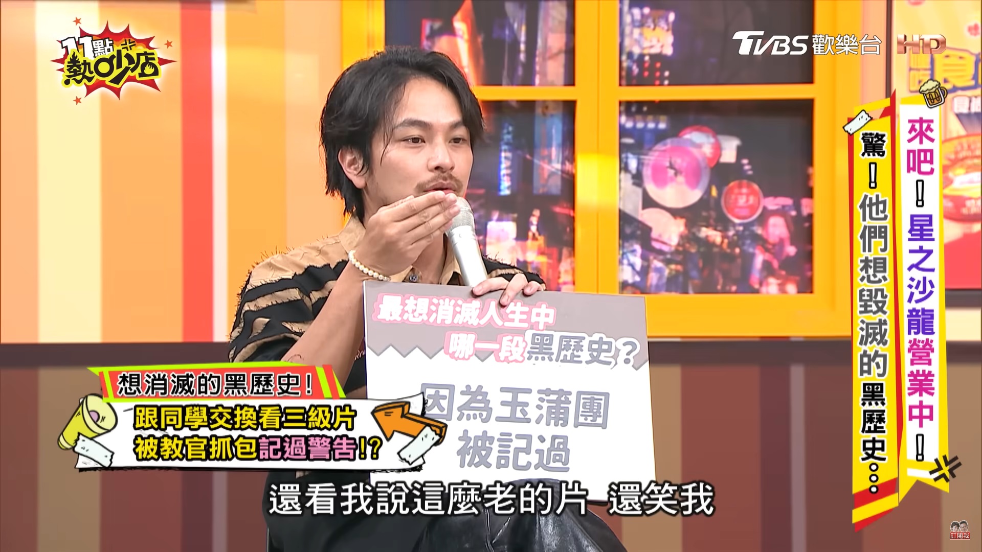 楊銘威則透露高中時期讀男校,大家私底下都會互相分享謎片,當時的情況是,他要將看完的DVD帶去學校交給其他同學,怎料卻剛好遇到教官在校門口例行檢查書包,為了不被發現,他刻意將DVD夾在課本裡面,但還是被抓包,沒想到教官還笑他「看這麼老的片」,更直接在記過教官室門口的記過單上寫「因為攜帶謎片DVD」,讓他超丟臉。