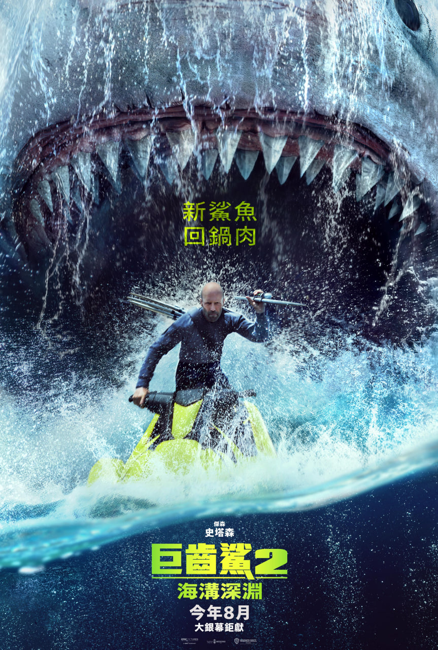 華納兄弟和華人影業共同推出的【巨齒鯊2:海溝深淵】,由傑森史塔森和吳京擔綱演出,其他演員包含蔡書雅(【巨齒鯊】)、佩吉甘迺迪(【巨齒鯊】)、賽吉爾佩里斯曼切塔(【藍波:最後一滴血】)、絲凱樂山繆斯(【變種天賦】)和克里夫柯提斯(【阿凡達】系列電影)。