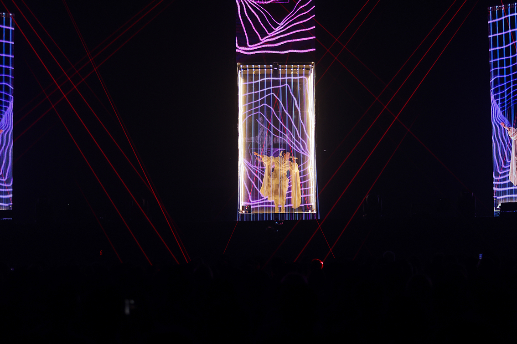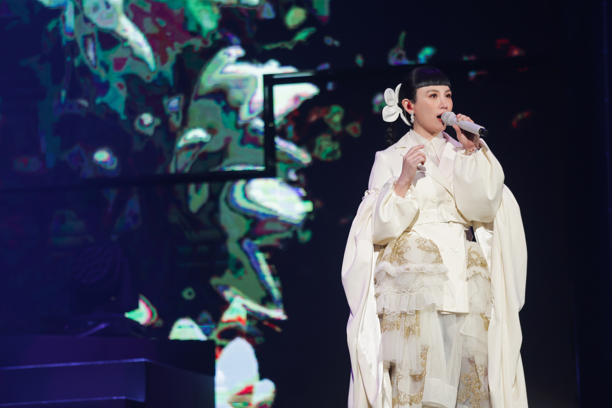 金曲歌后魏如萱(waa wei)今(13日)一連兩天返場台北小巨蛋,盛大舉辦魏如萱《HAVE A NICE :DAY 2 YOU》演唱會,此次開唱誠意滿滿,主打「美人造型全換新」、「歌單更新三分之一」和「舞台全面升級」,讓萬名粉絲看得過癮、聽得感動,完全臣服於文青教主的waa式視聽饗宴裡!她一出場乘巨型「變形金剛」舞台旋出、在一片白色動物森林的意象中,身著由自喜事集團代理英國設計師品牌「Simone Rocha」專程從英國專程為她空運來台的高貴優雅的禮服以層疊英格蘭刺繡蕾絲(broderie anglaise)和看似古董的緞面布料為主要元素,演唱《優雅的刺蝟》+《你是不會當樹嗎》組曲,身上解構東西方元素、拆卸再組合的白色立領西裝混搭裙裝配上水袖,展露既陽剛又陰柔的獨特氣息,兼顧氣質和氣勢,全小巨蛋都籠罩在waa度空間氣場下!