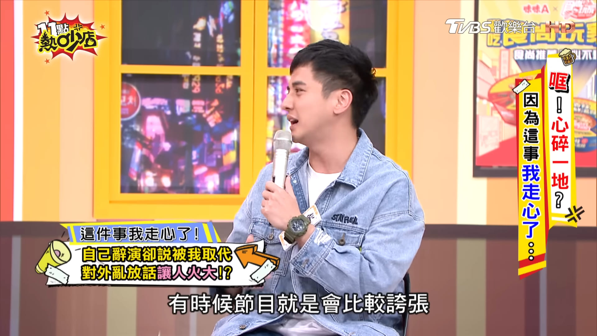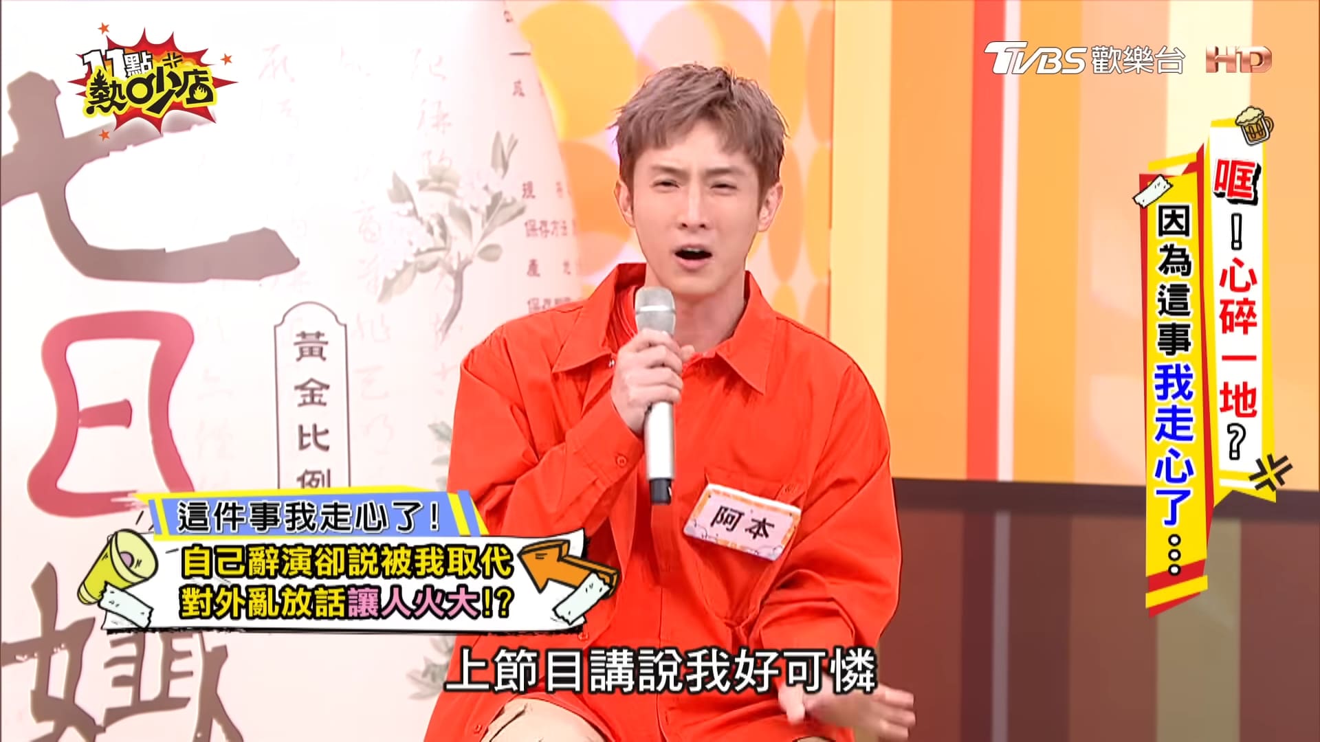 藝人阿本日前在節目《11點熱吵店》分享「走心」事蹟,透露曾跟同場來賓曾子余演出同一個戲劇的同一個角色,由於阿本演的是二代角色,曾子余竟然在上節目喊:「被取代」,讓他很受傷,忍了10年才公開,沒想到曾子余竟然反過來吐槽:「你這個是玻璃心」,立刻遭到全場砲轟。