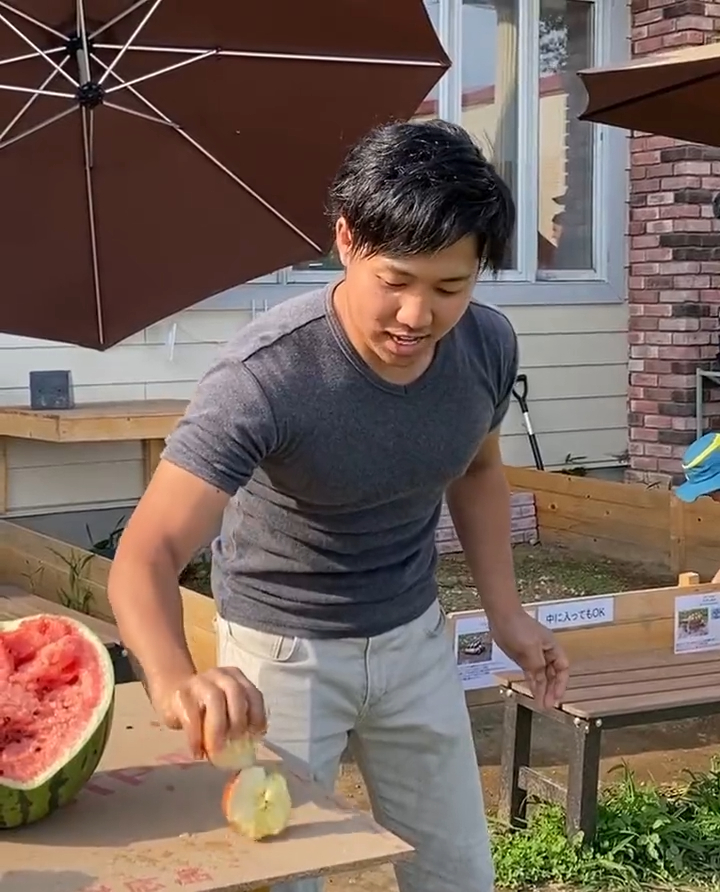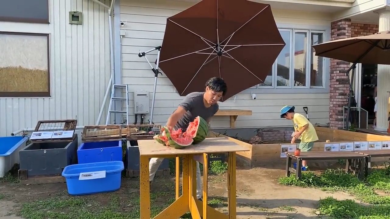 據悉,由於館長本身就是健身狂人,大學時期還加入了空手道社,平時私下朋友經常起哄要他用手頗開西瓜,後來索性開Youtube頻道「ちゃんねる鰐」,狂吸86萬粉絲訂閱,其中發現自己手劈西瓜的表演很受觀眾歡迎,於是就成為館中的一項特別節目,掀起話題!