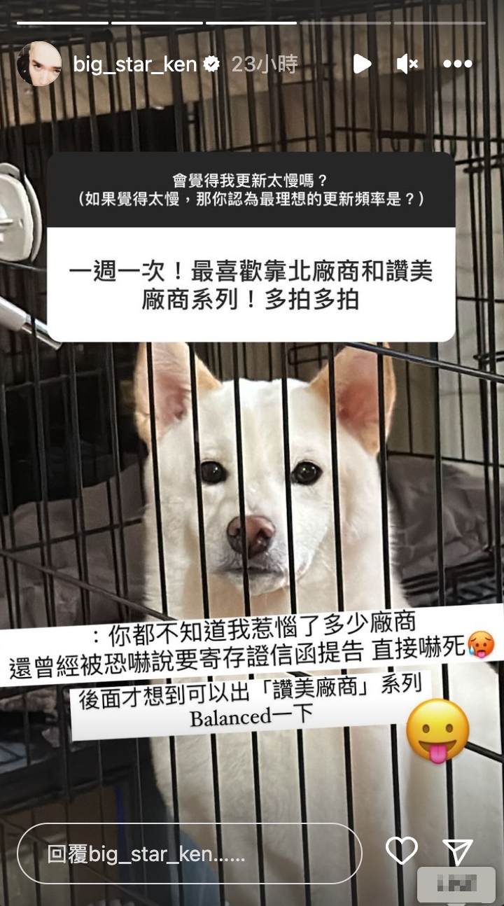 由於鍾明軒已經有三個禮拜沒有上傳新影片,因此收到不少「催片」的訊息,他也藉此機會詢問大家的想法。其中一位網友認為最好的情況是一週一次,並表示:「最喜歡靠北廠商和讚美廠商系列!多拍、多拍。」對此,鍾明軒透露:「你都不知道我惹惱了多少廠商,還曾經被恐嚇說要寄存證信函提告,直接嚇死!」也是因為這樣,才讓他想到可以拍「讚美廠商」,藉此平衡一下。