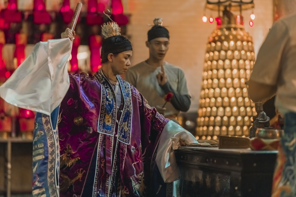 首次出演靈異片的柯叔元笑道應該是自己很有正能量,因此「賀爸」這個角色才會找上門來,能夠演像林正英那樣的道士,讓他相當開心,提到電影裡拿的法器,他表示很喜歡于子育的桃木劍配備:「拿劍多帥啊!我的法器捆仙繩真的很長,不只綁住妖魔鬼怪,連我自己都被繩子捆住。」柯叔元飾演的賀爸對擁有鬼手的兒子愛之深責之切,為了營造出這對宮廟父子深厚的親情,他特別問導演可否加入「巴頭」動作,不僅接地氣也符合人設,黃冠智也大力贊成:「爸,可以打大力一點。」戲裡也因為這個巴頭的設定讓人看出整個打鬼家族的好感情跟食物鏈,柯叔元大笑:「我打兒子,老婆打我,就知道這個家誰是老大。」