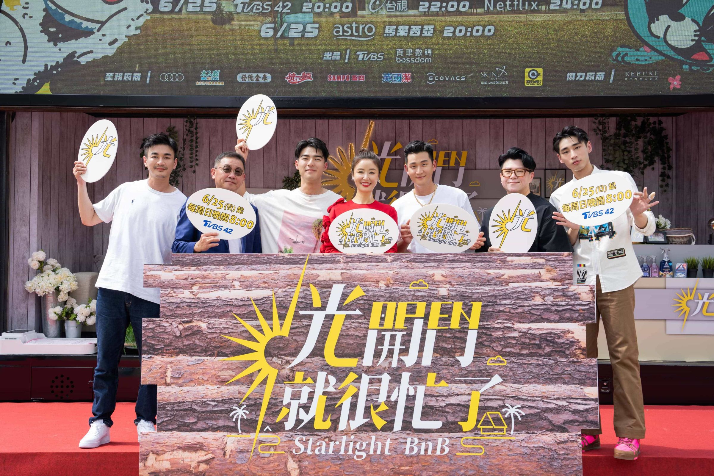 光系列第二季《光開門就很忙了》6月25日即將在TVBS42、TVBS精彩台、台視、Netflix、astro馬來西亞強勢開播,今(18日)在台北大直美麗華舉辦《光開門就很忙了》開播記者會暨夏祭市集活動,將民宿客廳與寵物區在現場還原,讓民眾可以真實體驗《光開門就很忙了》民宿。總製作人林心如領著卡司群周興哲、章廣辰、陳昊森、店狗短短與NINI,以及神秘嘉賓家家、戴愛玲、料理女王陸巧因、台灣寵物館館長柯心平與女兒仙仙盛裝出席,歌手曹格、李浩瑋也特別獻聲祝賀。林心如在首播記者會上也表示,現場宛如回到幾個月前拍攝時:「那時候好像每天都很辛苦,但又好難忘,想再吃大廚周興哲的料理。」