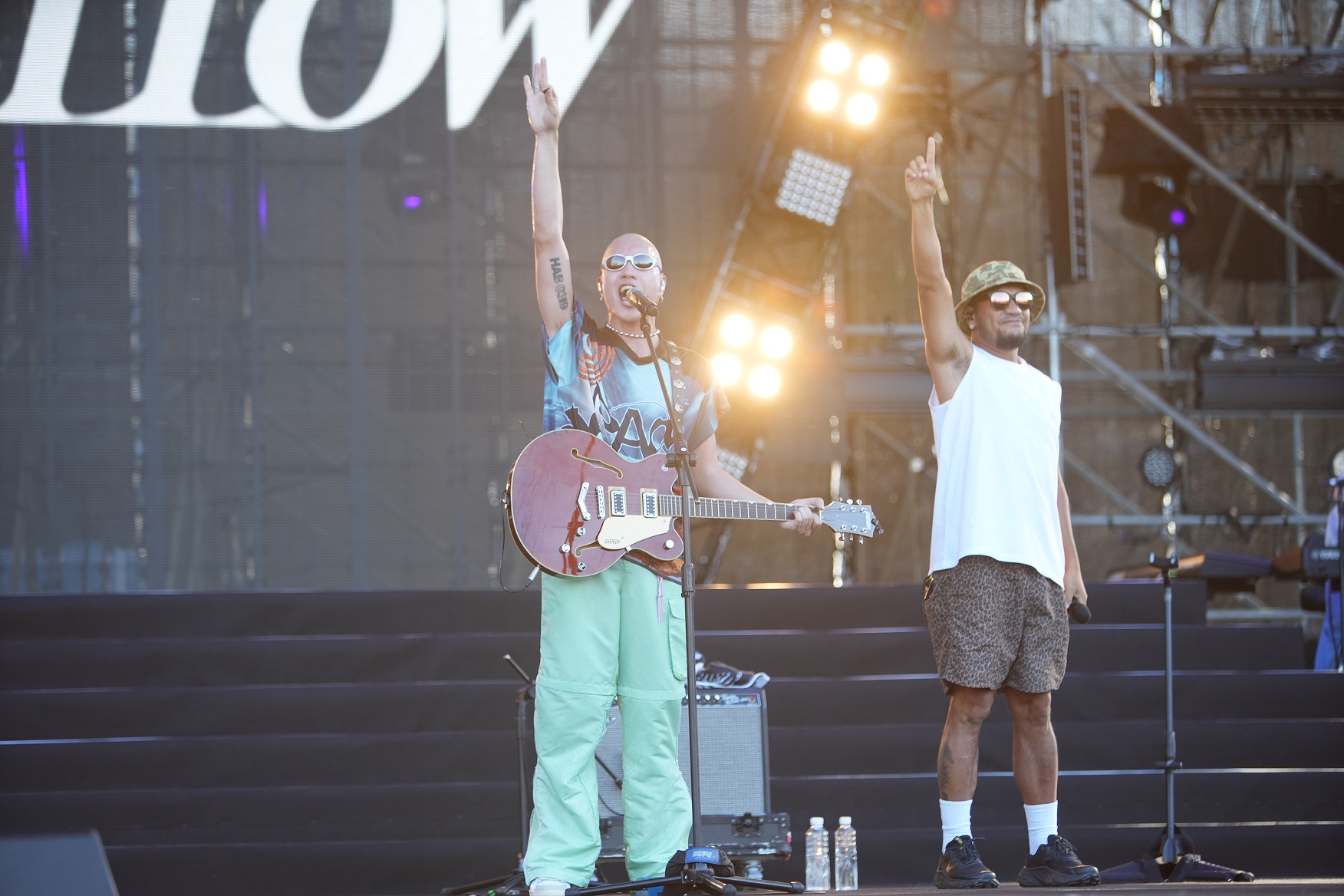 而今天(7/9)以特別表演身份出席的YELLOW黃宣今天連唱十首歌讓歌迷嗨翻,在唱到〈改變〉這首歌時還特別找來張震嶽擔任嘉賓一起合唱,兩人首次合作默契十足,更為音樂季帶來最高潮!黃宣透露昨天特別先看了本色音樂IG官網的影片,他笑說:「現場也太瘋狂,根本就是潑水節!」擔心今天表演被潑濕的他更開玩笑說:「要離瘦子遠一點,因為他只要瘦子在哪,歌迷的水槍就會朝哪攻擊!」