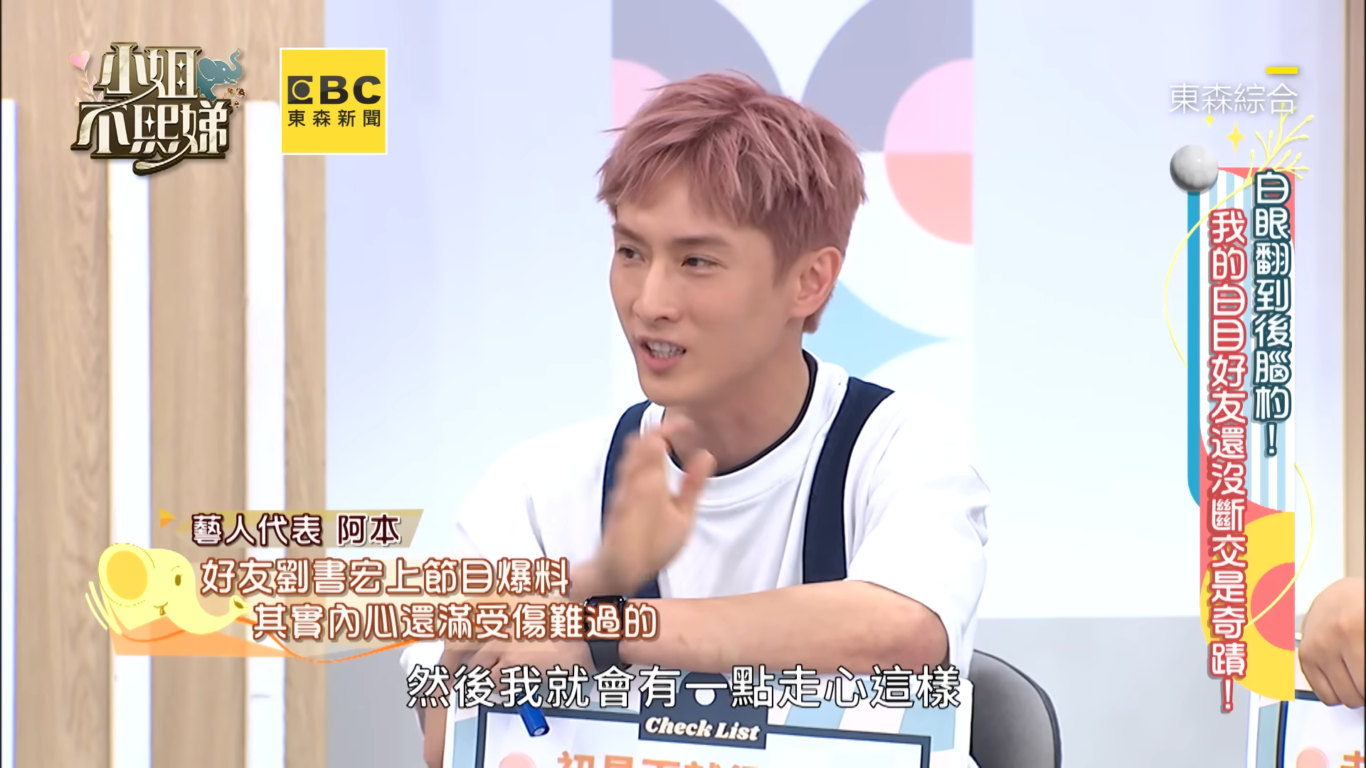 還原真相後,小S表示:「我覺得你就把書宏當成是一個偏白目的人吧!因為我覺得他也不像心機重的人」,希望能夠原諒他,阿本則直言:「我想一下」,他泛淚表示兩人私底下交情很好,這一路以來都陪在彼此身旁,「我就覺得我真的不是那個意思,我非常非常怕被誤會,我就會有一點走心。」即使如此,他認為兩人一定還是朋友,只是會需要透過溝通化解心結。