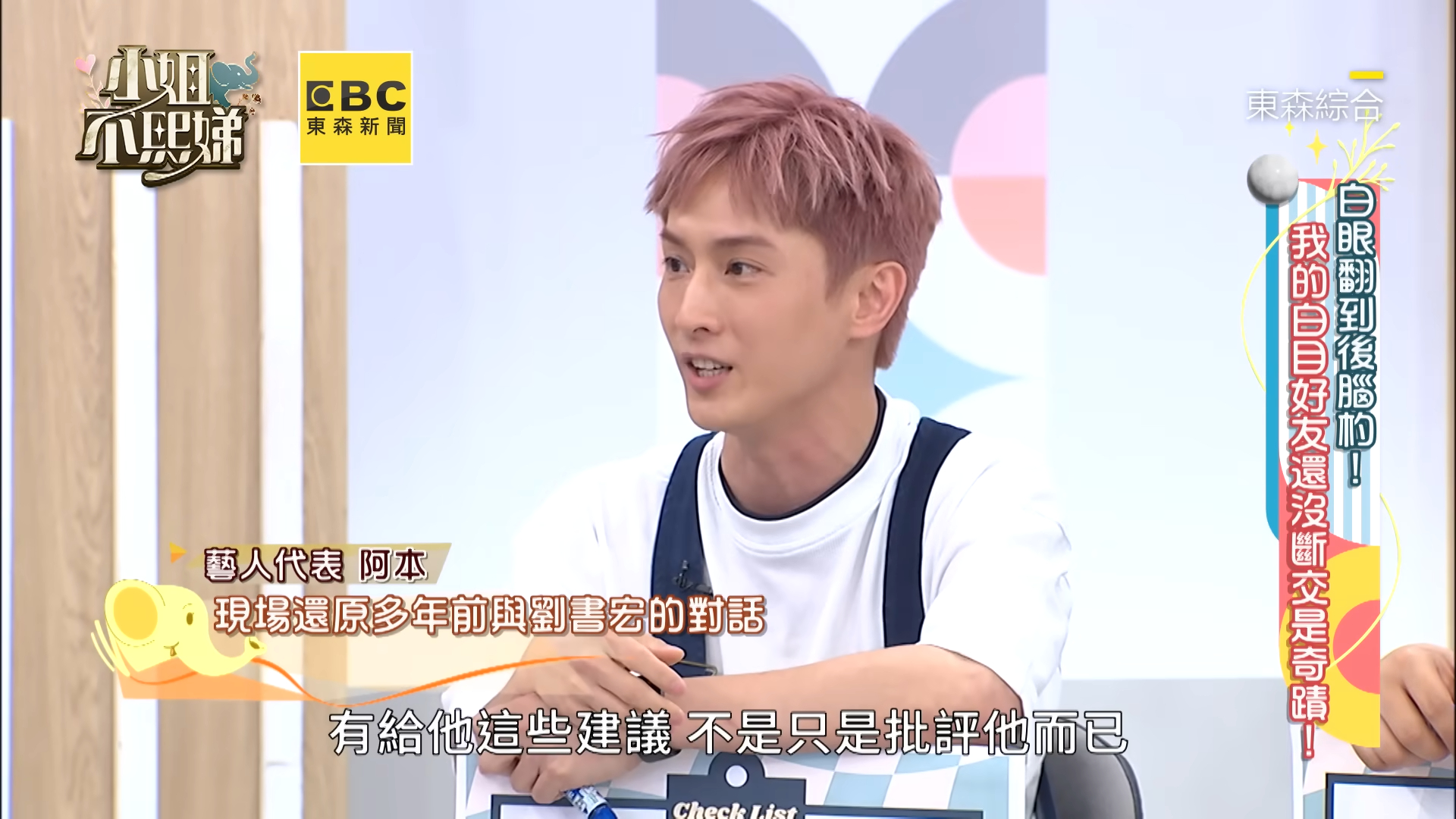 藝人劉書宏先前在節目《小姐不熙娣》爆料剛出道時,遭到男團出身的前輩批評,認為他不會唱歌、不會跳舞、不會主持、不會玩遊戲,只有身高跟長相而已,後來證實那位前輩就是「阿本」。雖然兩人私底下是好朋友,但阿本在節目上談到此事,忍不住泛淚表示:「我有一點點受傷」。