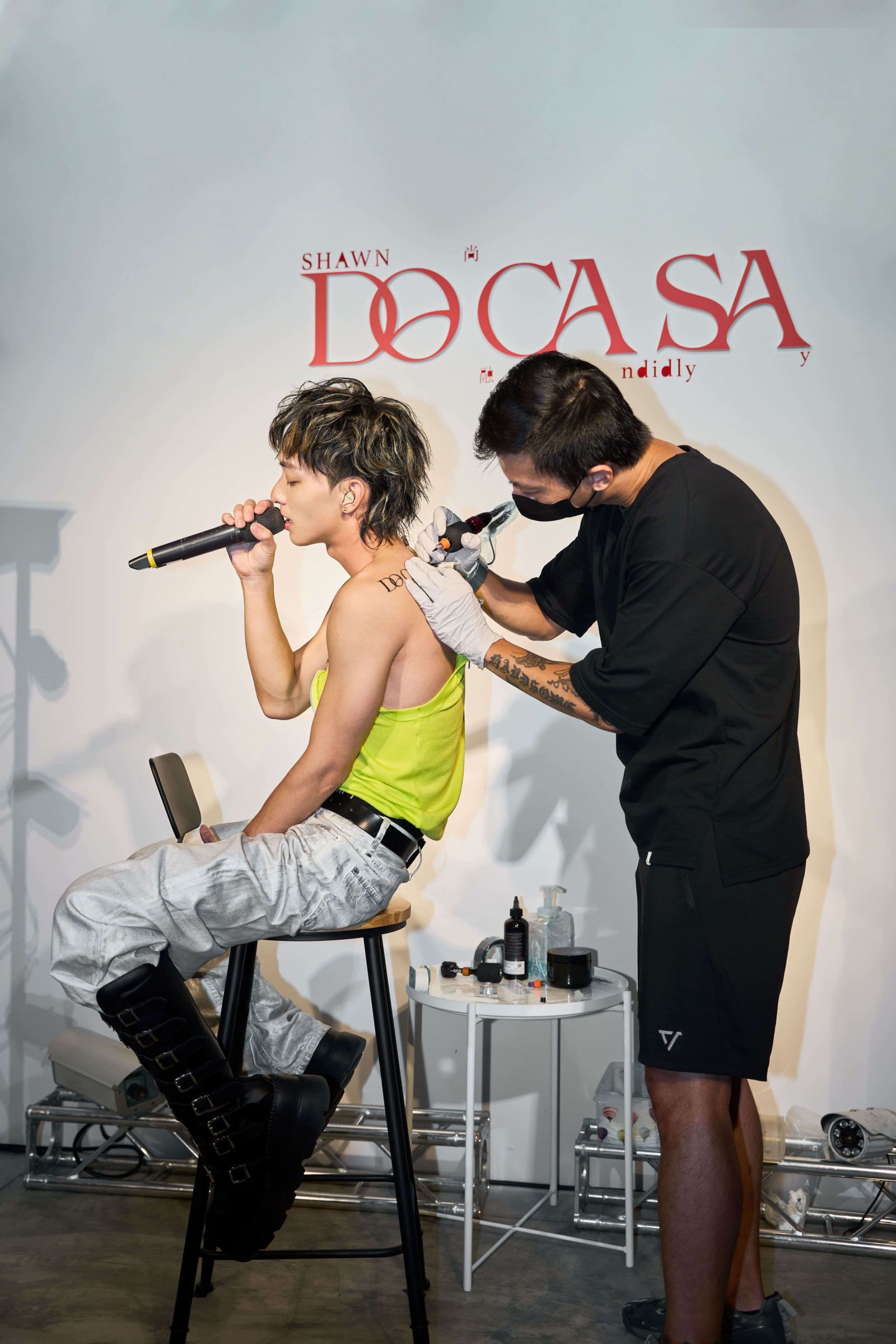 Shawn尚融以樂團「noovy」主唱身份出道,這次顛覆過往「融化系溫暖男聲」的形象,完全跳脫風格、搖身一變成「怪潮音樂才子」,以個人之姿發行首張創作專輯《DOCASA》,全方面的大膽嘗試讓粉絲們都相當驚豔。今天(7/11)舉行《DOCASA》刺青音樂記者會,Shawn尚融突破性地以邊刺青邊唱歌的形式演唱新專輯中的〈慢車道〉、〈抽我愛你〉、〈Mom don’t you cry〉3首歌,平時就喜愛籍由刺青表達自我的他,特別將專輯的名稱「DOCASA」直接刺在背上,象徵他對音樂的熱愛,也為音樂旅程上這個重要里程碑做紀念。