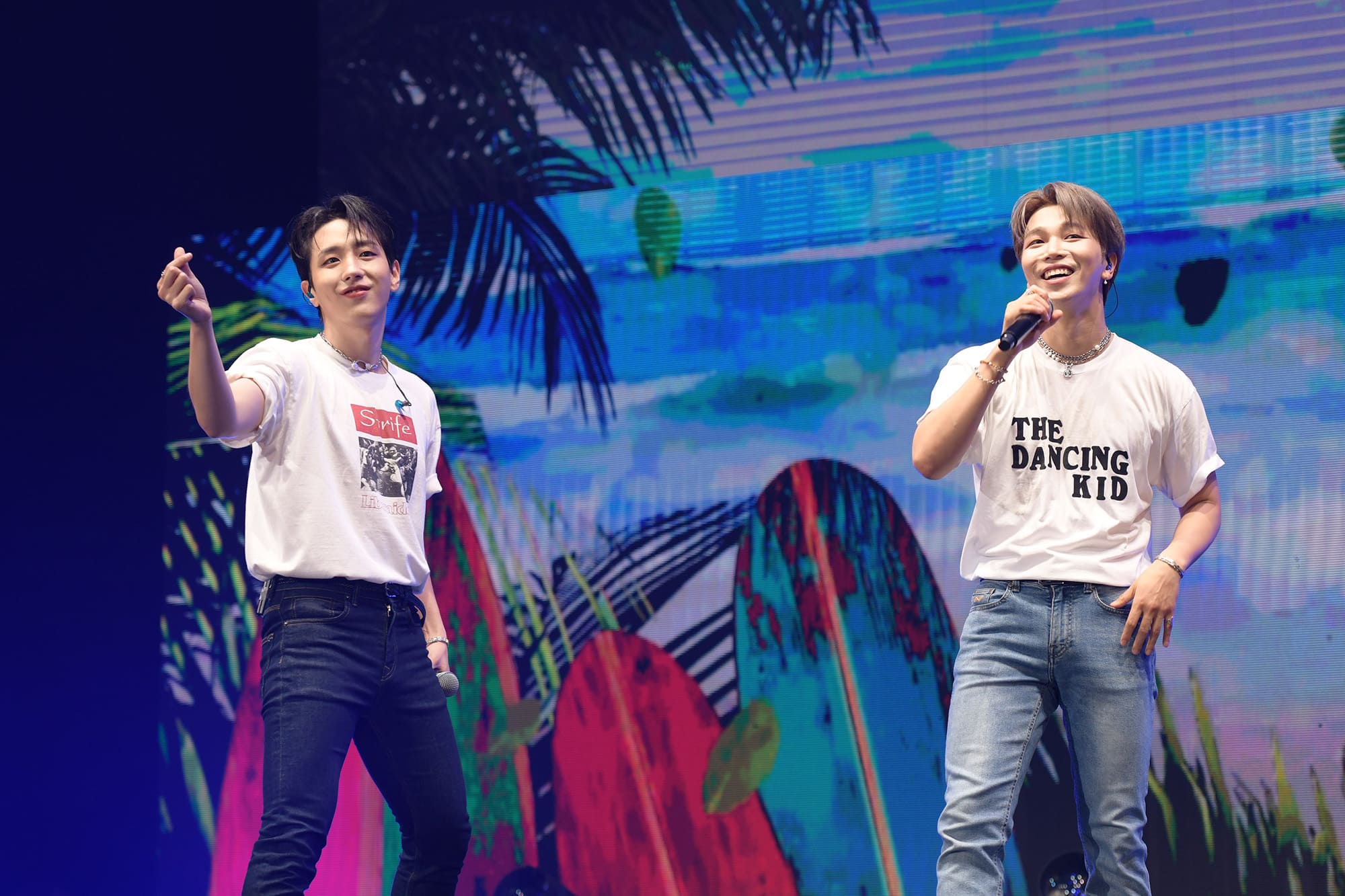 其中M.O.N.T的成員Roda在青島生活超過十年,因此一口流利中文全程與粉絲互動,還現場教了Bitsaeon幾句中文寵粉,SEVENUS的成員Ireah也是誠意滿滿,雖然超可愛的拿著小紙條參考,直接現場清唱了「想見你」致敬!特別的是,當SEVENUS演唱「Missing U」時,M.O.N.T也驚喜現身舞台,四帥合體讓粉絲激動不已!而VANNER則謝謝粉絲應援美食,大家都吃的超飽超幸福!歌單上,三團皆準備了「滿漢全席」的超強內容,包括M.O.N.T帶來「FEVER」、「GO CRAZY!」、「SHADOW」、「ANTI-HERO」、「NOIR」、「STUPIDLY IN LOVE」與「Like We’ve Never Been」,隨即SEVENUS的「Hello」、「Doesn't Matter」、「You Are」、「Missing U」、「10CM-However」、「EXO-Don’t Go(Butterfly Girl)」與「WAVE」,緊接著則是VANNER送上「Love Killa」、「Sky scrapper」、「LA chA TA」、「FORM」、「Like a star」、「Adore U」與「Prime Time」,三團人氣不分軒輊、旗鼓相當,尖叫聲與凝聚氛圍一次比一次高,當然最壓軸,讓不少粉絲感動飆淚的,就是三團齊聚獻唱「Rollin」與「Your Time」兩首好歌,讓活動昇華至最高點!