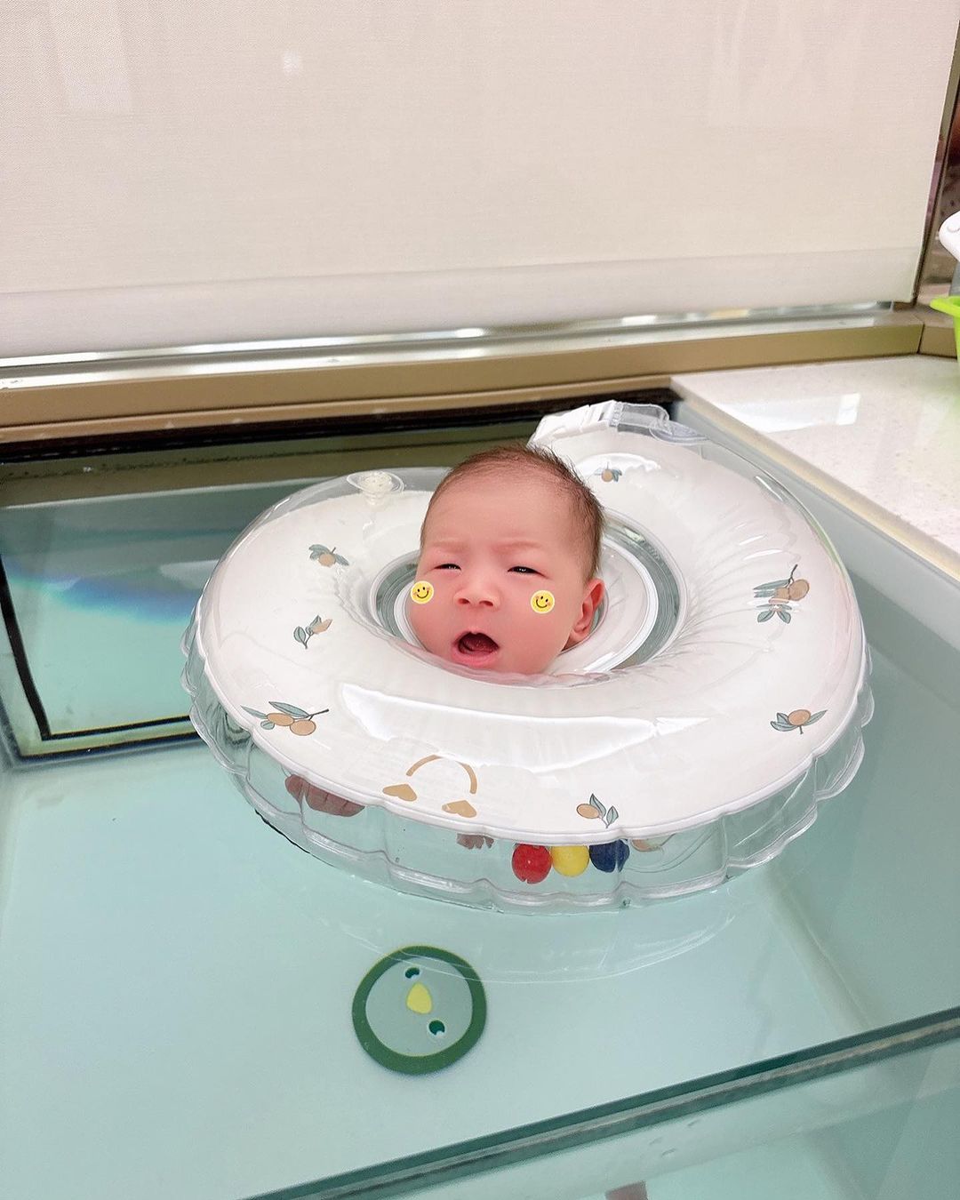 蕾菈兒子「正面萌樣」曝光!出生18天苦瓜臉學游泳 網驚呼:超像複製臉