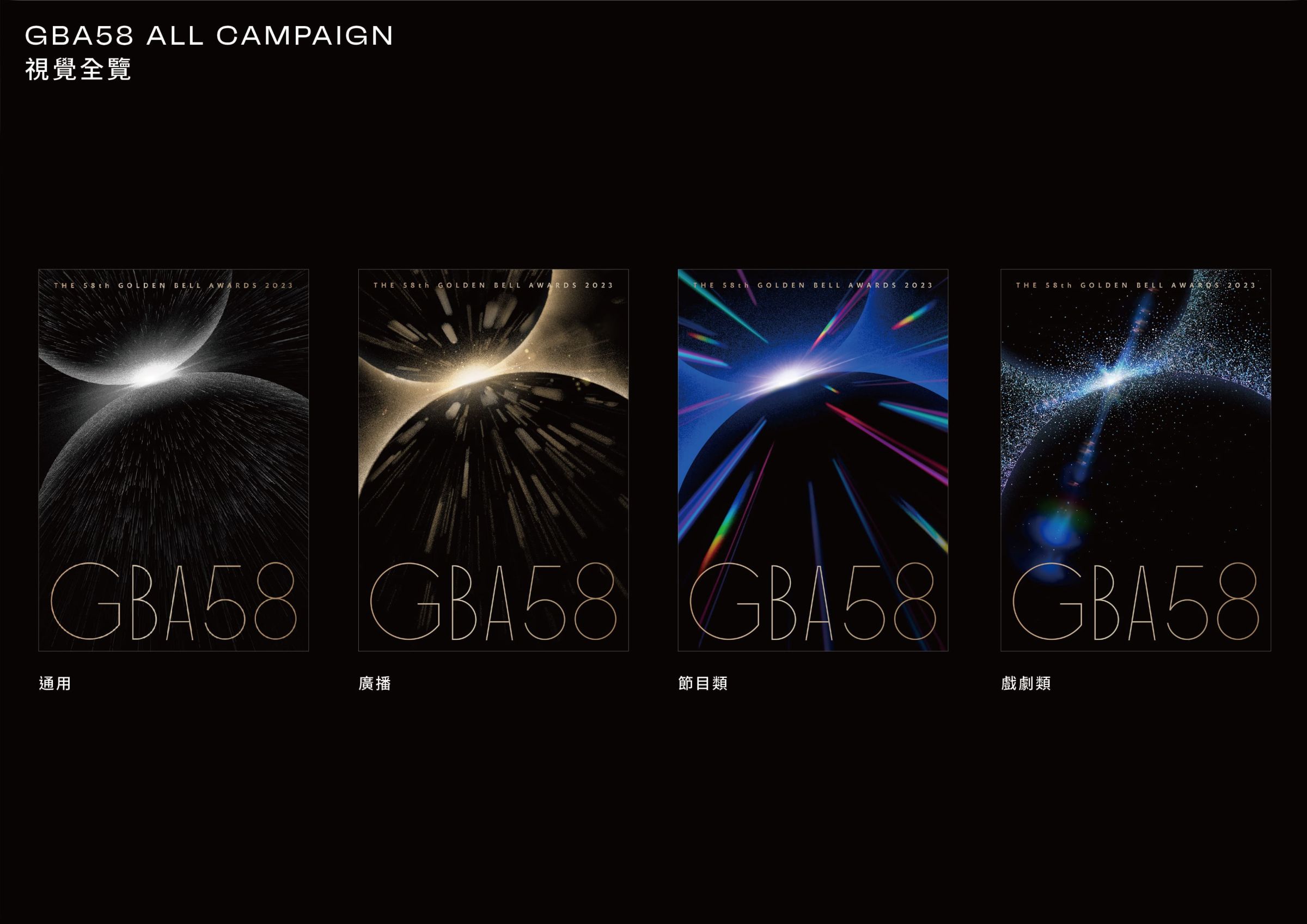第58屆金鐘獎「主視覺」將以「碰撞.希望」為主題,展現台灣影視內容產業在巨大的創作能量中精彩碰撞、呈現多樣的可能與結果,更希望藉由金鐘獎凝聚有從業人員,共同傳遞正向能量。因此,本屆三款視覺與舞台設計皆以「8」為意念,將兩個從無到有的「O」在碰撞中誕生出如無限的光芒,表達影視內容產業的好作品都是在碰撞產生各種希望。