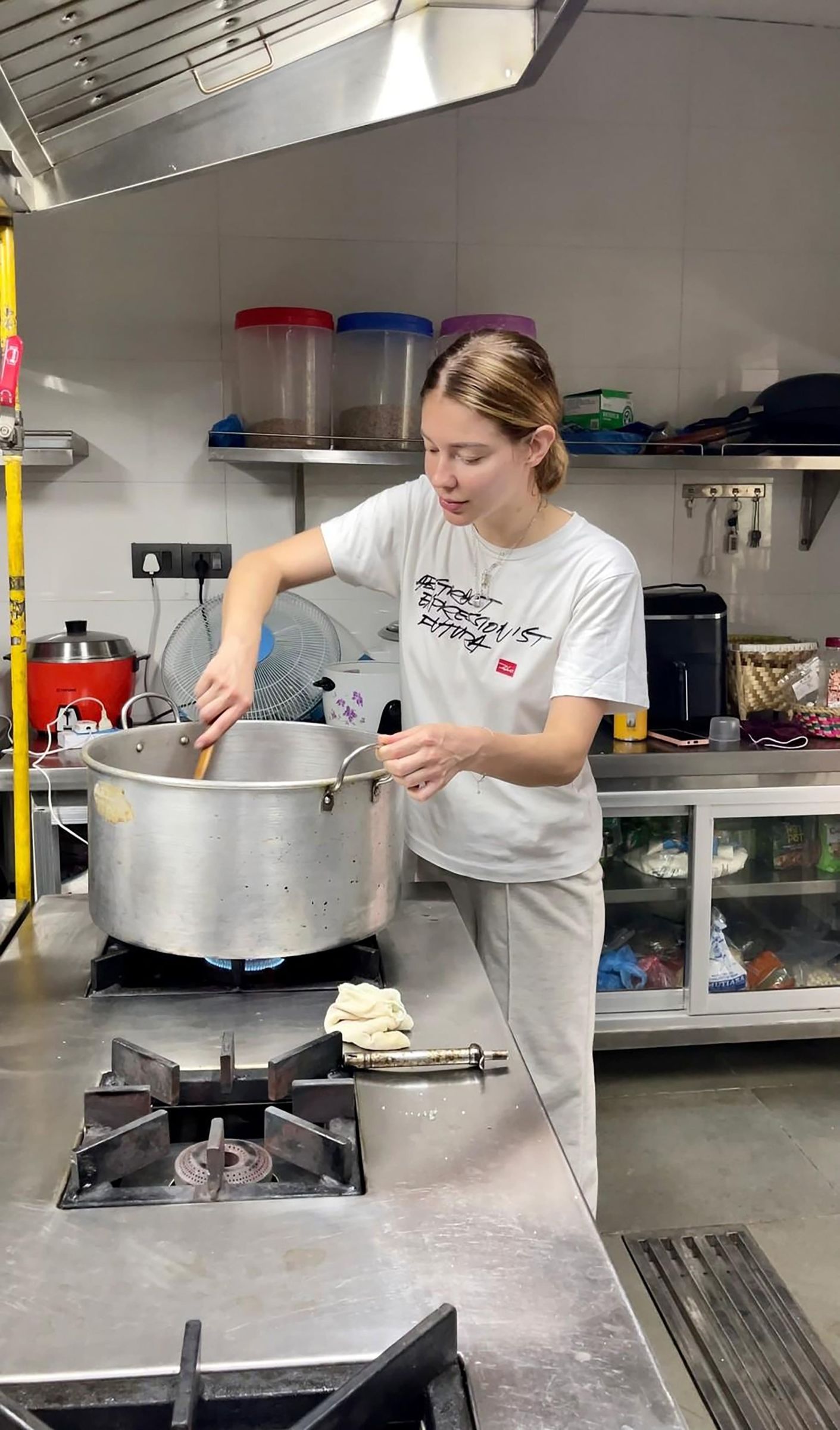 安妮出發前準備了許多餅乾零食,另外在當地買鞋子、筆記本、糖果等,分送給小朋友,有中餐丙級執照的她,也下廚與大家分享她的廚藝。在尼泊爾期間,她早出晚歸,有些寺廟及學校很偏遠,車程一趟就需2、3小時,安妮說,當她知道小朋友其實很需要鞋子時,就去市場採購40雙鞋,當地老闆得知她是做公益,還打對折售出,一起做愛心。