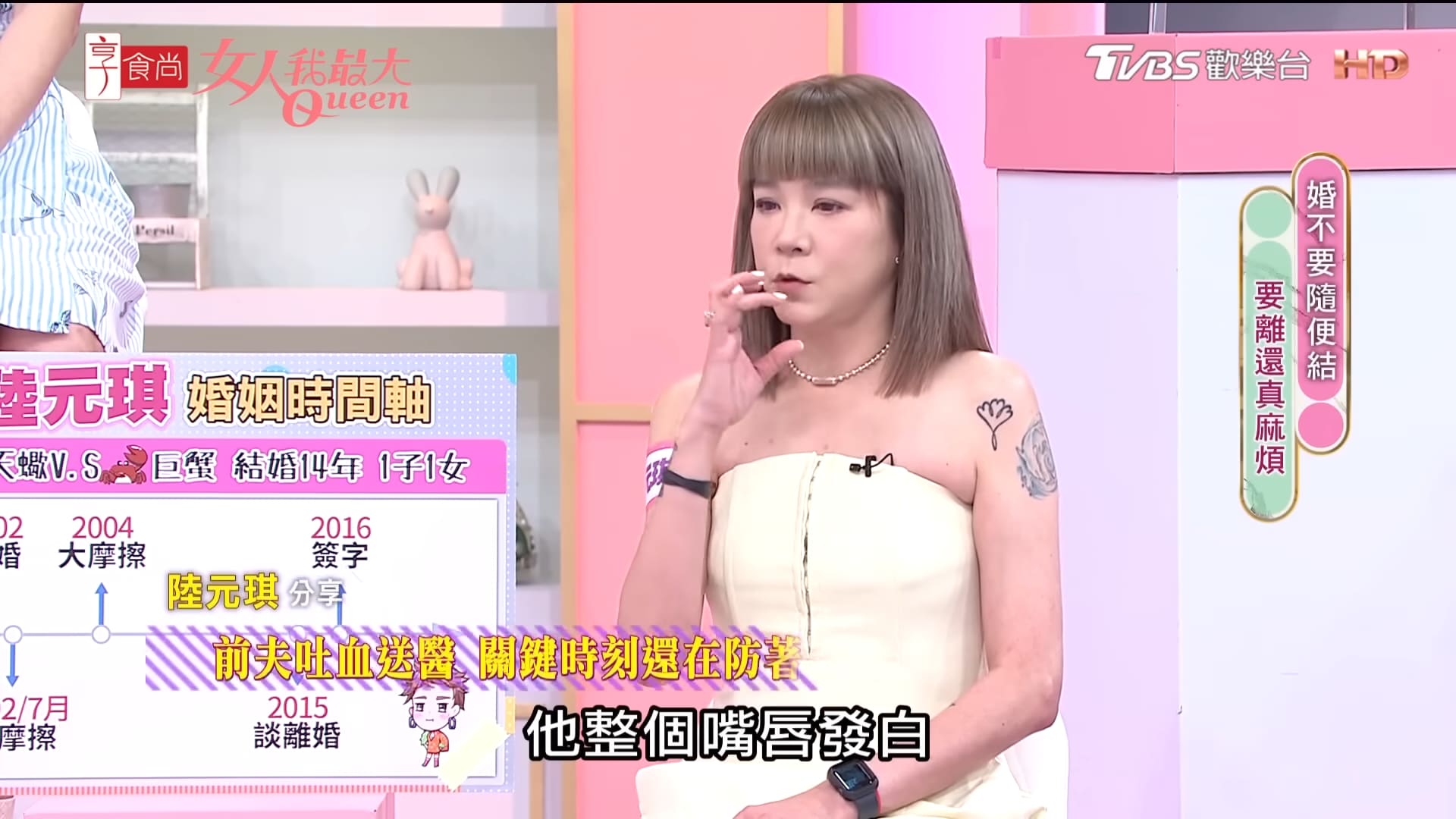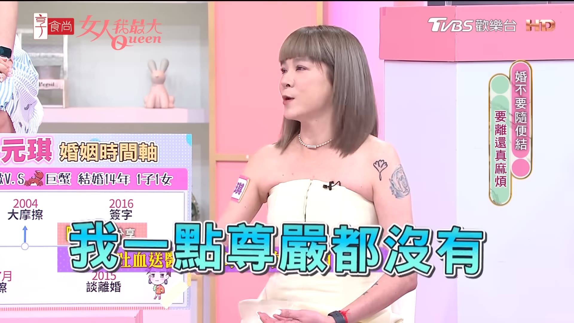 藝人陸元琪與音樂人袁惟仁曾有過一段婚姻,她日前在節目《女人我最大》談到經營婚姻的心路歷程,不僅透露自己遭到惡劣對待,還曝光離婚的導火線,讓她心痛直言:「一點尊嚴也沒有」。