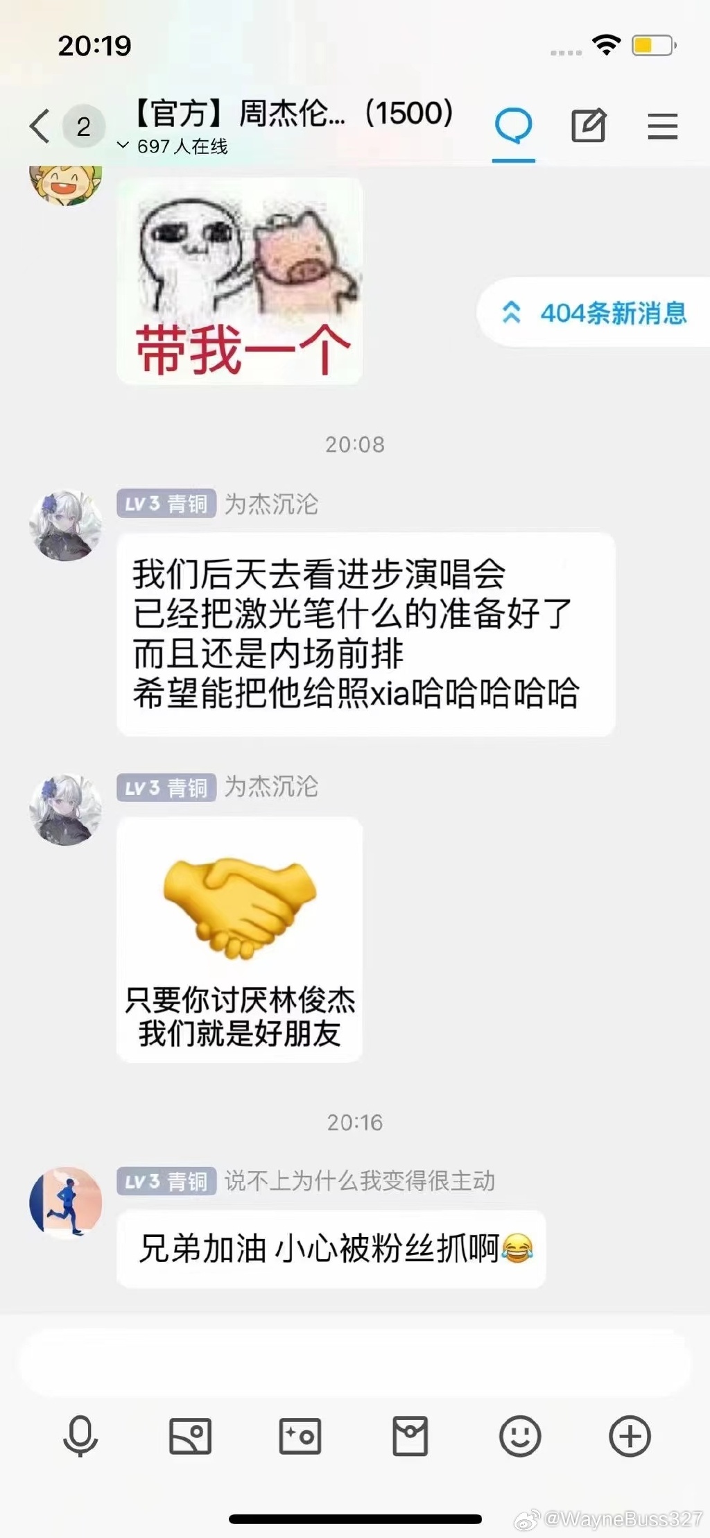 林俊傑19、20日在上海舉辦演唱會,然而有粉絲曬出他在第一天的表演過程中,竟然疑似被雷射筆攻擊眼睛,導致左眼明顯泛紅,讓大家相當心疼。沒想到事後竟然有相關對話流出,有位名叫「為杰沉淪」的網友在周杰倫粉絲群組表示:「我們後天去看進步演場會,已經把激光筆什麼的準備好了,而且還是內場前排,希望能把他給照瞎。」接著還丟出一張寫有「只要你討厭林俊傑,我們就是好朋友」的圖片,行徑相當囂張。