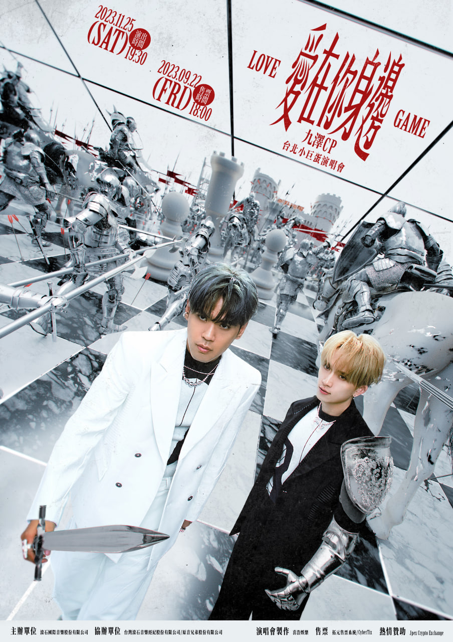 由陳零九、邱鋒澤所組成的雙人組合「九澤CP」,因熱門節目狼人殺單元爆紅,2019年推出首支洗腦神曲〈天黑請閉眼〉席捲華語樂壇,至今仍佔據各大KTV熱播排行榜。九澤CP在今年迎來成軍4週年,延續〈天黑請閉眼〉的感動,於七夕情人節當日(22日)推出續集作品〈愛在你身邊〉,數位單曲及MV同天浪漫上線,也於今日(23日)正式公開11月25日《九澤CP 愛在你身邊 LOVE GAME 台北小巨蛋演唱會》的主視覺和售票資訊,給歌迷滿滿的驚喜。