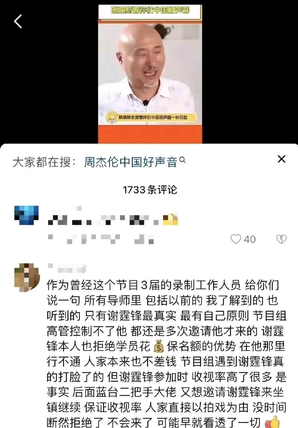 由於爆料人士無法提供實質證據,因此大部分的人對於「買冠軍」的真實性仍抱持著懷疑的態度,甚至質疑此舉只是為了炒作。此外,還有自稱參與過節目3季錄製的工作人員表示,眾多導師當中,「只有謝霆鋒最真實、最有自己原則」,就連節目組的人都控制不了他,當時還是邀請了很多次才成功邀約,即時決定來上節目,「謝霆鋒本人也拒絕學員花錢保名額的優勢」。眼見謝霆鋒加入節目後收視率上漲,原本想邀請他繼續參與,但最後卻以拍戲為由拒絕。