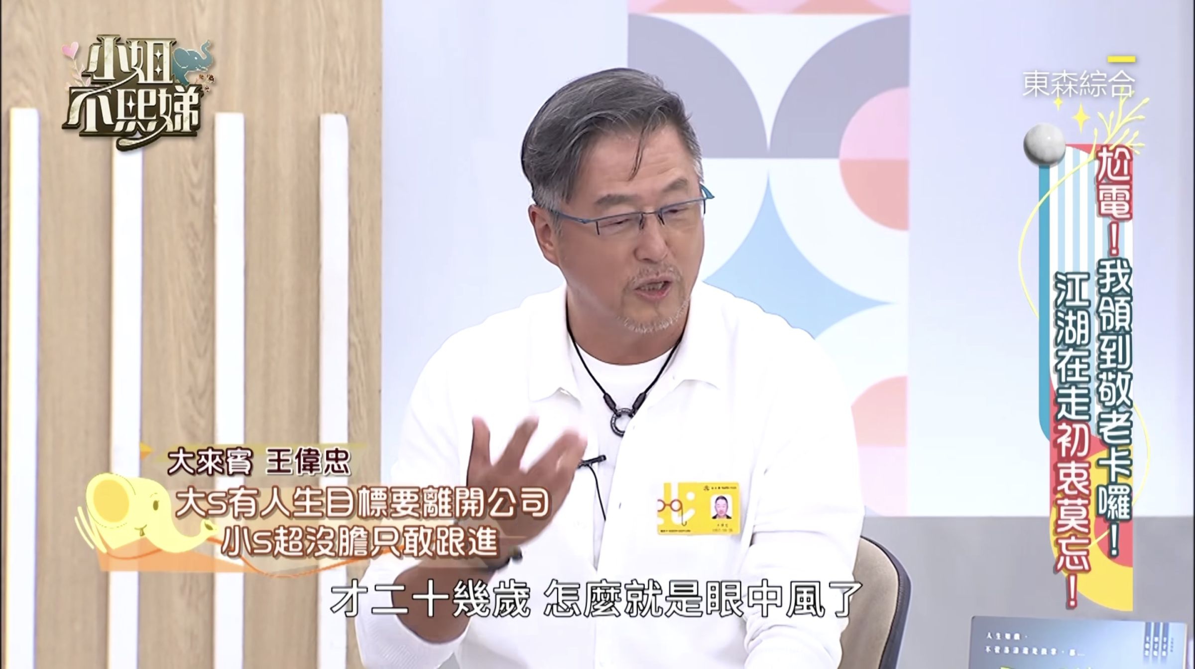 王偉忠表示當年大、小S跟自己約談時,選在開開心心的尾牙當天,但他明白大S本來就不太管外界的聲音,而且姐妹倆沒有惡意,只是就事論事。姐妹倆在表達想要自立門戶時,事先就已經達成共識,並由大S主講,由於小S當時很怕王偉忠,所以全程不敢說話,甚至因為太過緊張,所以一直過度眨眼,王偉忠還當場模仿並笑虧:「才20幾歲,怎麼就是眼中風了。」