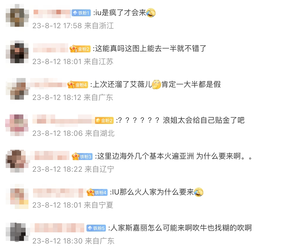 相關消息曝光後,立刻引起網友們的熱烈討論,由於中國因為有「限韓令」的緣故,所以韓國歌手想要登台是難上加難,因此大家對於名單上有IU而感到不能理解,更表示:「這也太扯了吧,IU怎麼可能會來」、「能把IU請來我給你磕頭」、「別的不清楚,但史嘉蕾和IU怎麼可能會去」。