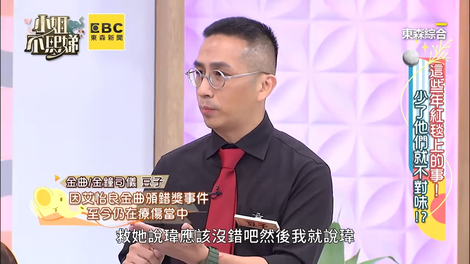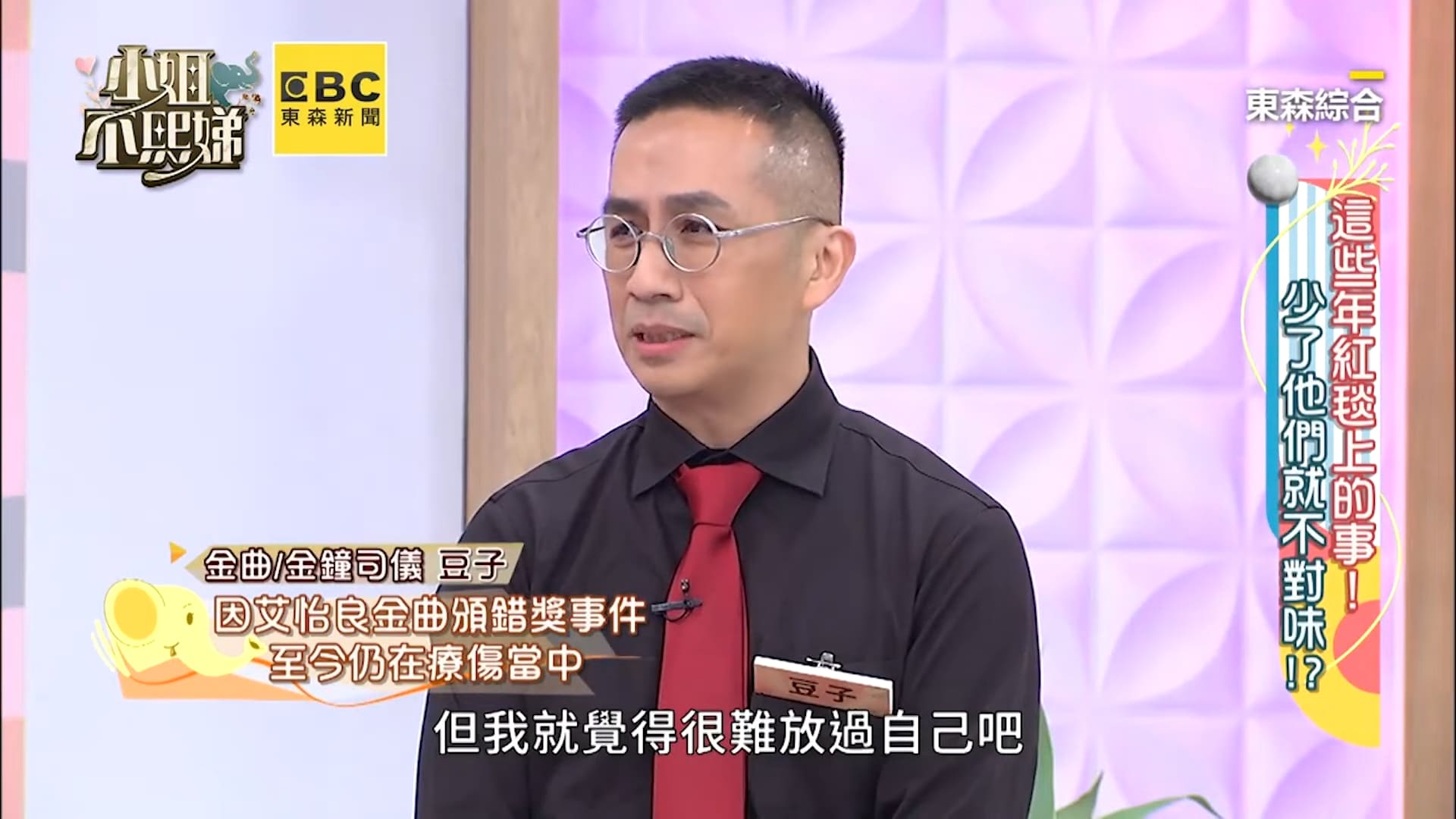 歌手艾怡良今年擔任金曲獎頒獎人,沒想到卻因為將評審長「陳建騏」的簽名誤認成得獎者,導致頒錯獎,引起熱烈討論,她還為此開直播落淚道歉。不過,當時擔任典禮司儀的豆子(賀正邦)日前在節目《小姐不熙娣》還原事件始末,自則表示:「很難放過自己」。