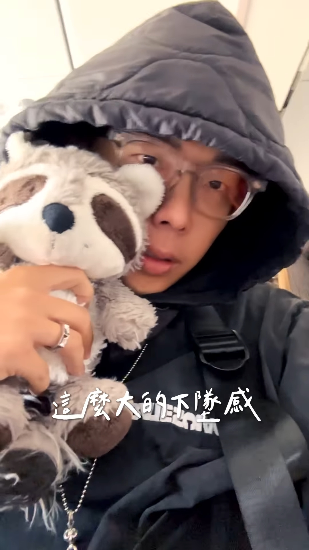 酷炫表示日前跟反骨團隊搭飛機到澳門工作時,遇到亂流攪局,他坦言:「坐飛機從沒體驗過這麼大的下墜感。這是我第一次覺得與死亡靠得這麼近。」雖然知道亂流不會嚴重到讓飛機墜機,但還是讓大家都很害怕,反觀身旁的艾瑞絲完全沒有受到影響,依舊呼呼大睡。只見影片中,因為亂流的關係,畫面搖晃得非常嚴重,甚至還有乘客嚇到放聲尖叫、緊握著彼此的手,空姐更敬業提醒大家要抓好扶手,注意安全。