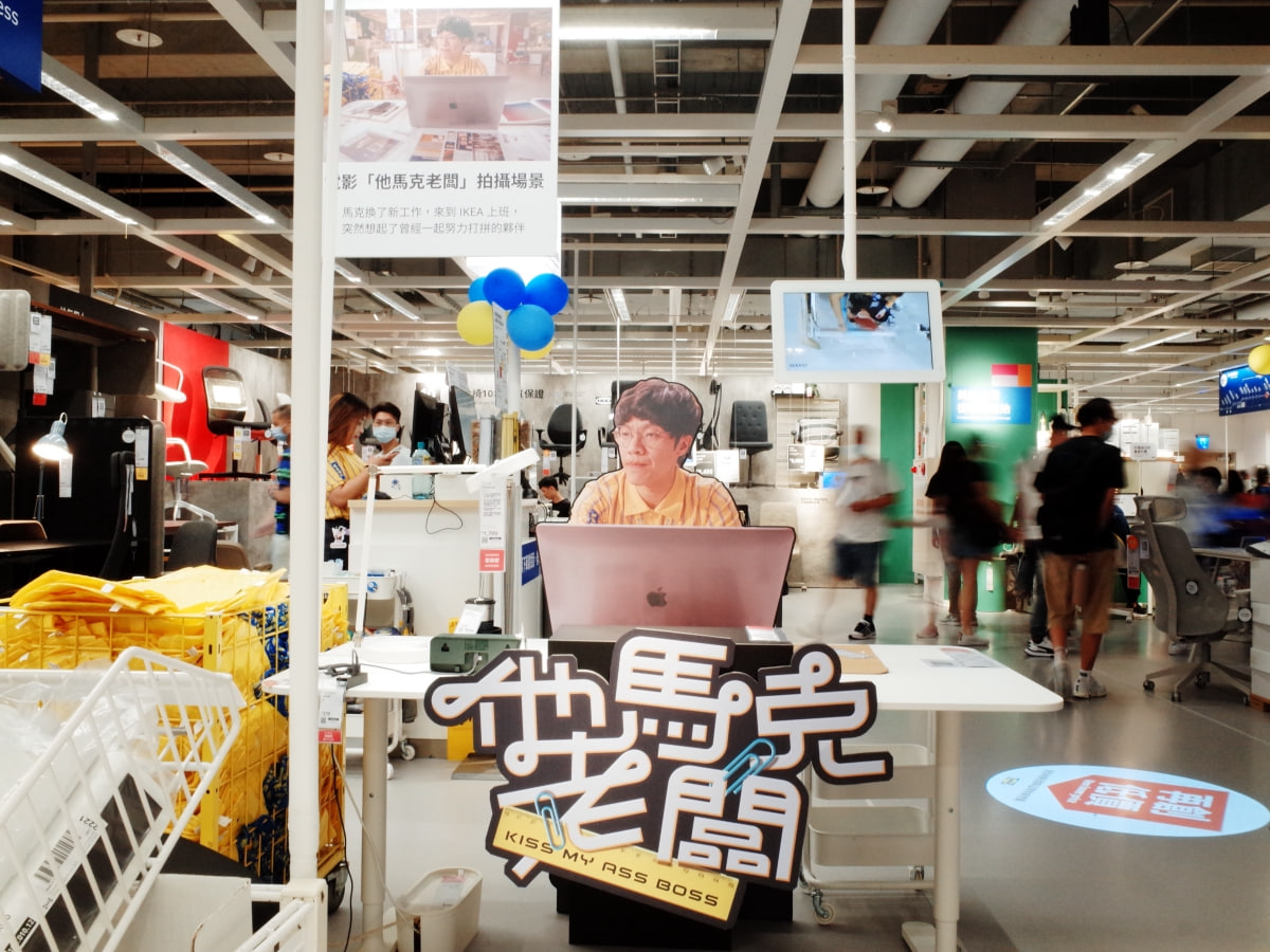 由人氣職場網路漫畫《我是馬克》改編的最新奇幻職人喜劇電影《他馬克老闆》,將在9月22日推出優先口碑場、9月28日中秋連假檔期歡樂登場。導演瞿友寧昨(16日)率領主演群盧廣仲、YELLOW黃宣、蔡亘晏(爆花)、黃鐙輝、江齊、盛平、游小白、楊傑宇抵達IKEA宜家家居台中店,不僅舉辦中部粉絲拍照會,與全場粉絲相見歡,也為為期一個月的「《他馬克老闆》電影裝置展」揭開序幕,展覽特別複製出電影千萬辦公室的一角,為了這個展覽,導演和工作夥伴更是用盡巧思佈置,暗藏許多驚喜彩蛋:像是拍戲時的死神生死簿、巨型釘書機、茫您廣告會議室的金錢大掛鐘。導演瞿友寧說:「其實這個電影很像每個人一生庸庸碌碌的縮影,在馬克身上,或是每個角色身上,都可以找到不同階段的自己。」也因為這樣的原因,這次電影裝置展也暗藏他自己創作生涯的很多細節、彩蛋,像是當年拍攝《惡作劇之吻》的漫畫、《刻在你心底的名字》國際版音樂唱片、《花甲男孩轉大人》當年拿到東京電視節大獎的獎座等等,甚至桌上便利貼寫的字也都暗藏小驚喜,影迷可以自行前往挖寶,細節至少有365個!」演員們在現場參觀時既認真又興奮,很多拍攝時的回憶浮現,導演笑著跟大家說「各位同事,歡迎回來上班」,只見盧廣仲、黃鐙輝又坐回拍戲中習慣坐著的位子,崩潰大喊:「天啊!拍戲時那個上班的惡夢又重現了」,笑翻全場,現場氣氛相當有趣熱鬧。