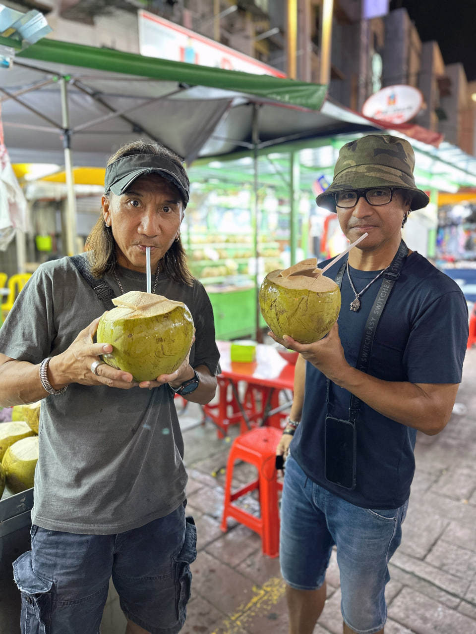 相隔5年重返馬來西亞開唱的動力火車,特別提早抵達吉隆坡,第一晚馬上去逛了當地有名的夜市鬧區,看到滿滿當地美食跟水果,眼睛看得發亮,馬上各開一顆椰子跟觀光客一樣邊走邊喝。在出發前,原先擔心被歌迷遺忘的動力火車,走在吉隆坡熱鬧的十字路口,看到大型螢幕上正播著自己演唱會的廣告,覺得十分新鮮!沿途更是被不少人認出來,也讓他們開心覺得自己沒有被歌迷忘記。