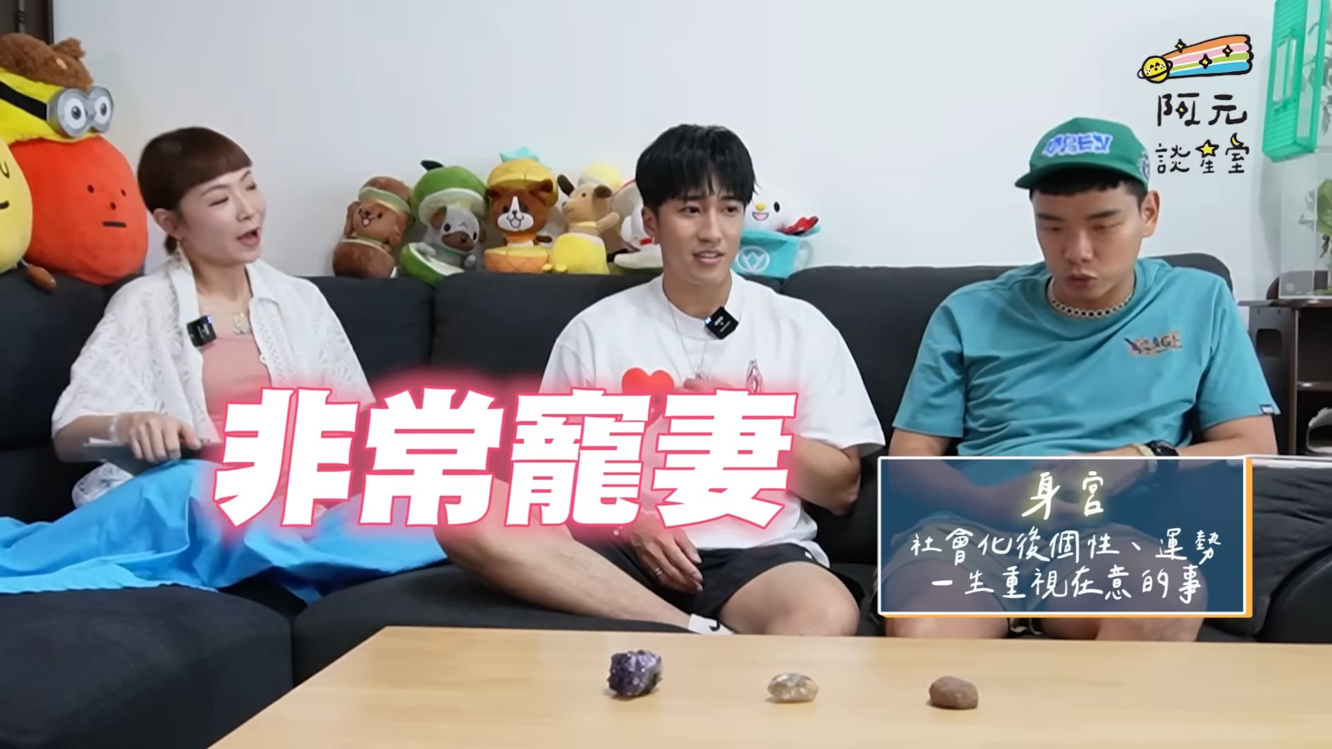 聊到婁峻碩的感情問題,八弟(蕭志瑋)透露有一次兩人去夜店時,他竟然帶著焦凡凡一起去,婁峻碩則透露:「我會開始去夜店是凡凡帶我們去」,八弟坦言當時覺得很奇怪,因為一般來說,不會有男生帶自己的另一半去那種場合,並指出婁峻碩的身宮位在夫妻宮,所以會「非常寵妻」,元元則補充這樣的人最重視感情,但不僅限於愛情,即使如此還是會以自己為主。