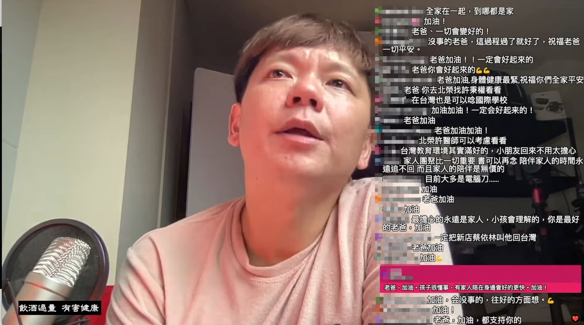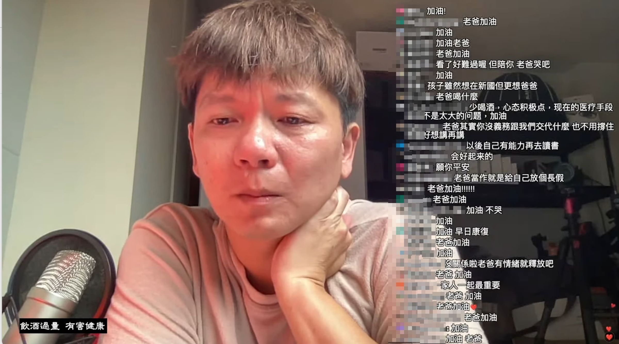 老爸9月底開直播透露因為右半邊身體麻痺的情形持續惡化,檢查之後發現和平共存了6、7年的腦瘤竟然爆開,雖然已經知道身體不對勁,但他坦言:「我當下其實是有哭出來的」。診斷結果出爐後,他緊急掛急診尋求治療,醫師認為老爸現在還年輕,狀況算好處理,應該要儘早開刀治療。而家人們也為了陪伴他,所以要從新加坡回到台灣生活,讓他相當感動!談到激動處,他難掩激動情緒,數度哽咽,讓粉絲都相當心疼。