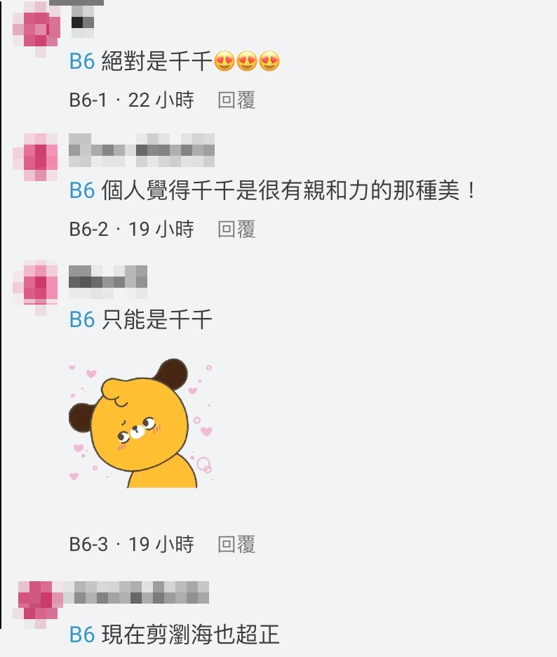 貼文曝光後,網友紛紛秀出私藏名單,其中包含查理、金魚腦、Jcnana(倩倩)、品子等人,而最多人推薦的是「千千」,大家紛紛表示:「我心中第一名是千千,真的好漂亮!皮膚白、身高又高、眼睛下又有眼痣。」、「沒看她的影片,但因為她的美貌特地追蹤了IG」、「千千絕對是歹丸難波萬(台灣NO.1)啦~」