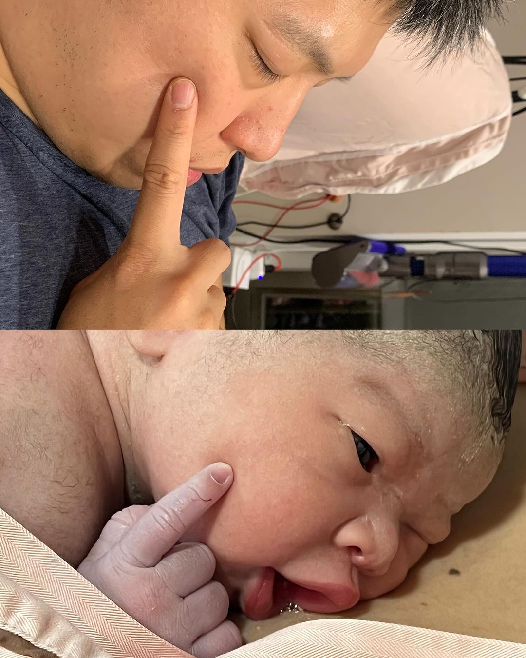 只見照片中,Ivy雖然剛生產完,但氣色看起來非常好,兩人臉上都掛著幸福的笑容。有趣的是,女兒手比「七」字躺在媽媽的胸口,Ken笑說:「我跟Ivy看到整個笑出來。因為我很常不自覺的比七放在臉上!」顯見有其父必有其女。最後,他感謝所有醫療人員,讓身為新手爸媽的兩人很放心。