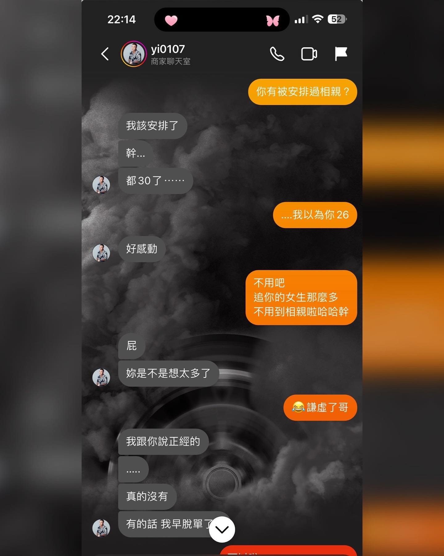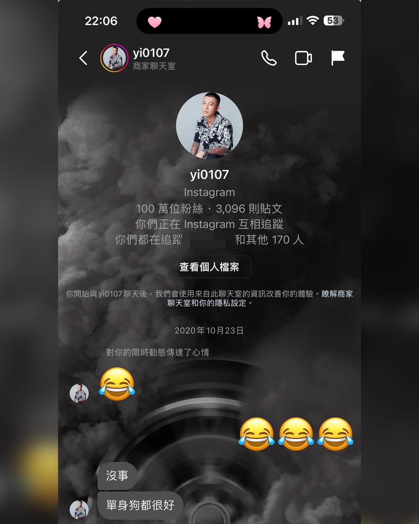 只見對話紀錄中,兩人第一次在IG通訊息是在2020年,鳳梨先是對歐菈的訊息回覆一個笑哭的表情圖案,接著表示:「沒事,單身狗都很好。」後來被問到有沒有相親的經驗,他表示自己已經30歲,是該安排的年紀,歐菈先是對他的年紀感到很驚訝,並表示:「不用吧!追你的女生那麼多,不用到相信啦!」