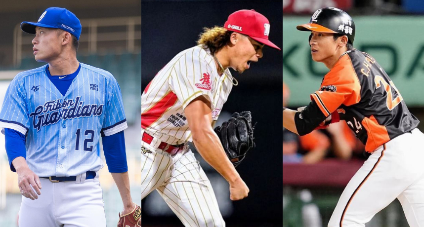 林吳晉瑋(中信兄弟)、蔣少宏(味全龍)、戴培峰(富邦悍將)。
