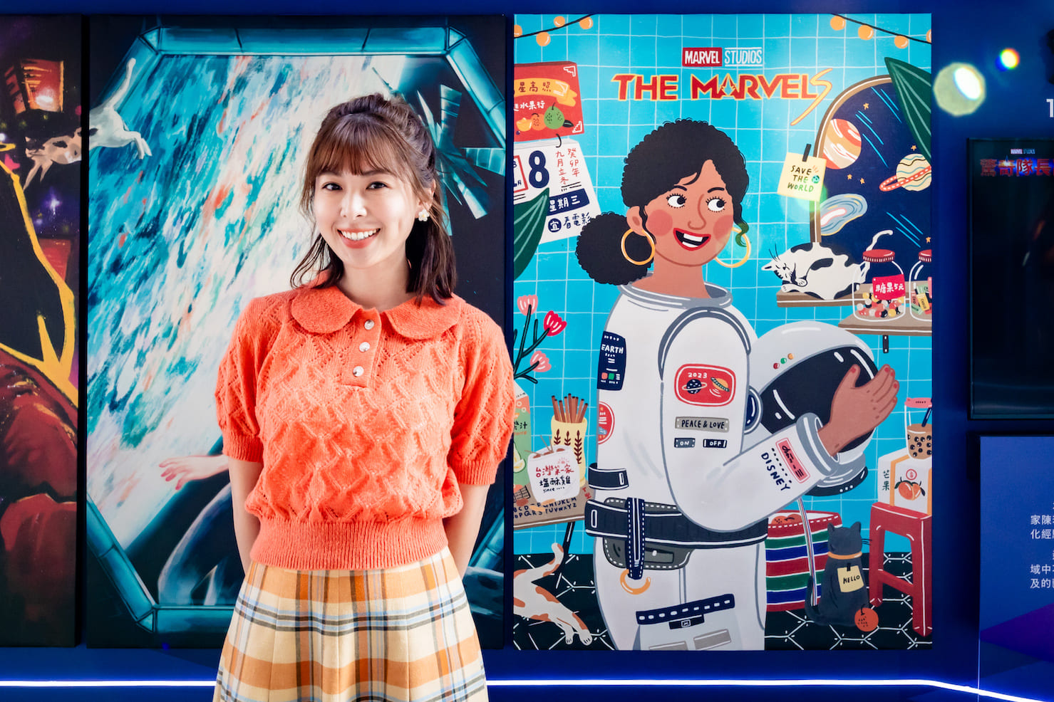 《驚奇隊長2》超級女力藝術創作展-The Marvels @TAIWAN 邀請到的三位風格獨特的藝術家包含插畫家盈青、33 ,以及 Z 世代塗鴉藝術家陳若欣,分別以驚奇隊長卡蘿丹佛斯、莫妮卡、驚奇少女卡瑪拉為主角創作,並加入台灣元素。整體融入了跨界多元性、超級女力、在地象徵。用藝術串連起穿梭在不同宇宙的超級英雄組成藝術界的女力天團,就如同電影中三位超級英雄全新組合般亮眼出擊!