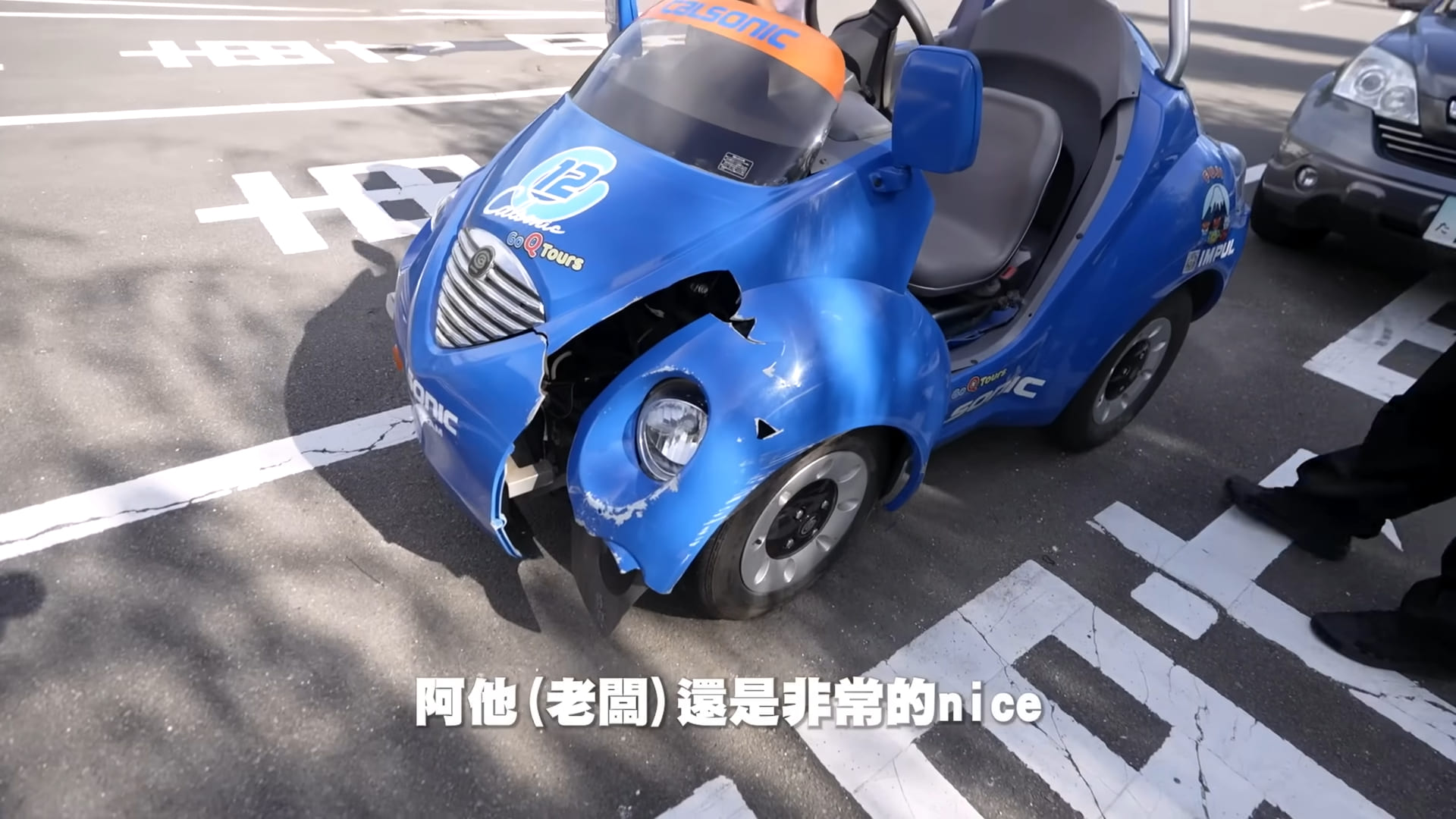 究竟是如何發生意外,柔柔解釋過彎的時候,方向盤轉太多,導致車身一直往人行道偏過去,雖然有踩剎車,但還是來不及減速,因此導致意外發生。面對自己的失誤,她也自責道歉。經過跟老闆一番討論後,酷炫最後以15萬日圓(大約3.2萬新台幣)作為賠償,雖然花了不少錢,但他表示:「還好柔柔沒事,但我也很怕她剛剛其實如果人飛出去是會非常危險的。」也不斷向老闆道歉致意。