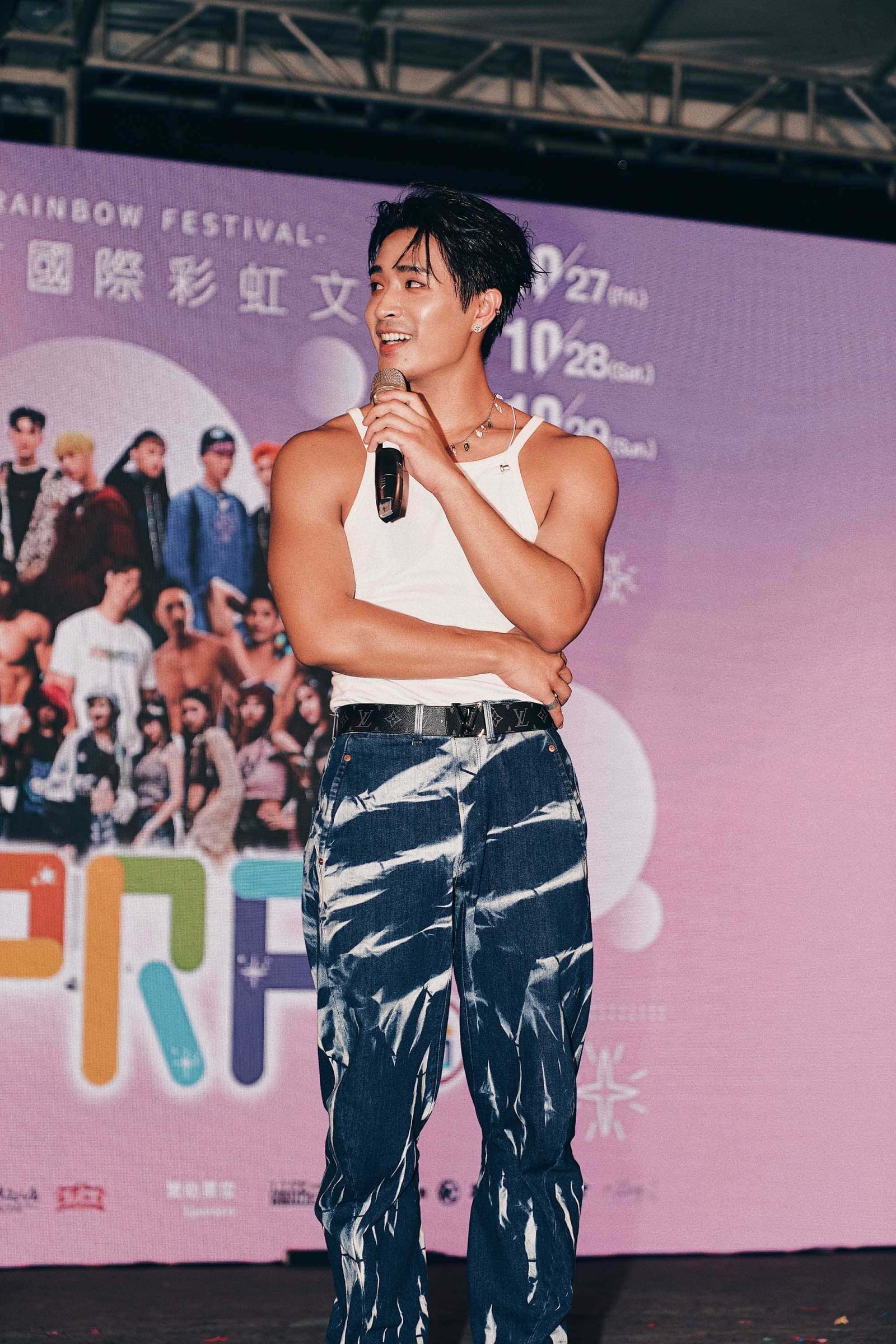 同志天菜刺刺近來發片,他則把新歌首唱獻給了國際彩虹文化節,他身著牛仔外套,帶4名壯漢舞者唱跳登場,當他跳到酣暢淋漓時,順勢脫去外套,露出只穿吊嘎的猛男身材,讓全場都嗨叫興奮不已,尤其,當舞者跳到彎腰翹臀,刺刺還伸出愛之手,借位滑過男舞者俏臀,性感指數爆表,讓全場尖叫不已!刺刺首登同志慶典舞台演唱自己的歌曲,興奮之情溢於言表,此場演出也多了很多女粉絲追隨,讓他開心不已,開心說:「愛不分性別、族群,希望大家愛自己,推以及人,把愛傳遞給全世界!」閻奕格也開心在國際彩虹文化節演出,被滿場粉絲的熱烈氣氛感染,她一連高歌三首歌,笑說下次一定還要來!