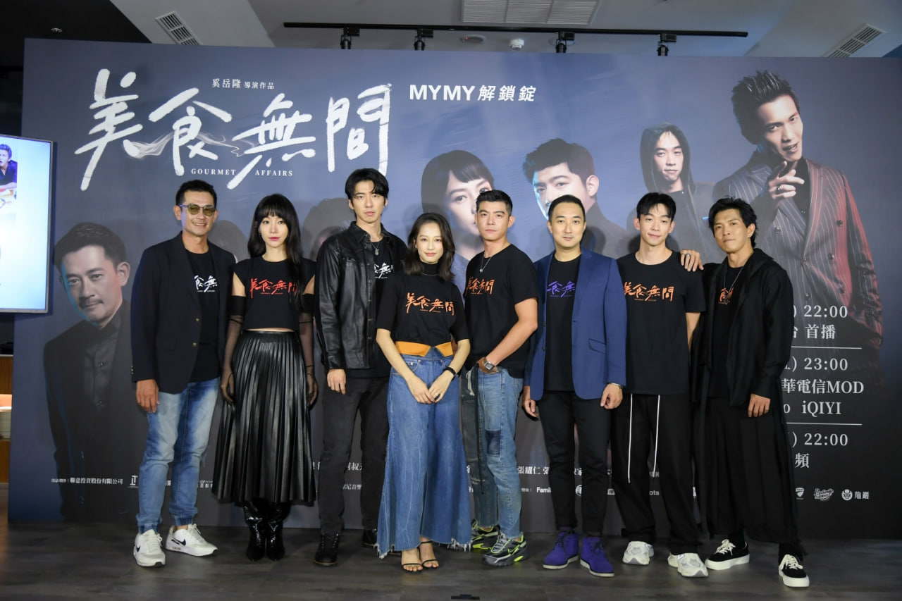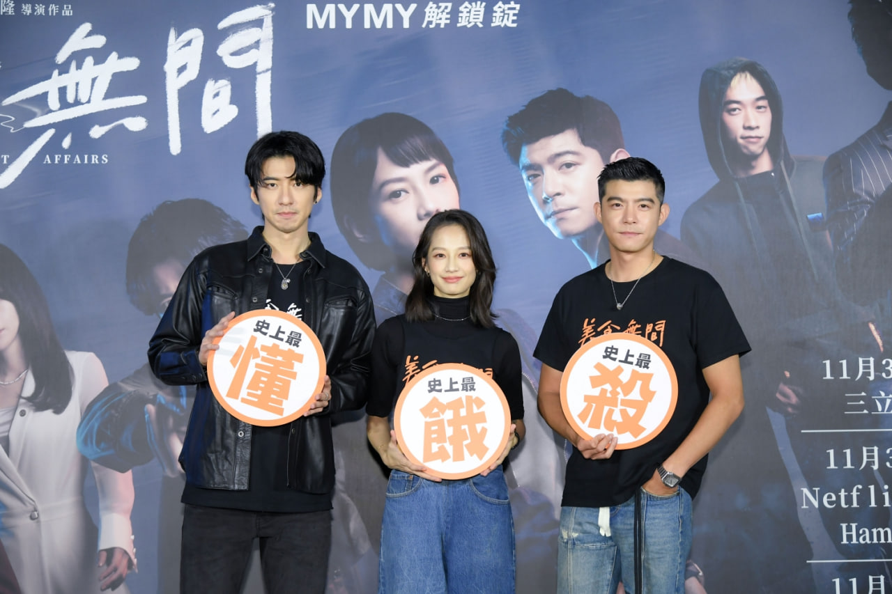 台灣首部融合美食與警匪動作類型影集《美食無間》即將在11月3日(週五)晚間10點於三立都會台首播,Netflix、中華電信MOD、Hami Video、愛奇藝國際版等平台同步跟播,11月5日華視播映。今(1)日舉辦首映會,導演奚岳隆率主要演員傅孟柏、王柏傑、簡嫚書、柯叔元、黃尚禾、陽靚、王可元難得合體,每個人拿出代表角色的美食板,分享拍攝趣事,現場也播放精彩片花,簡嫚書貢獻最強吃播超誘人,「東坡CP」傅孟柏和王柏傑祭出男男吻戲掀高潮,「最帥大叔」柯叔元戲裡戲外都霸氣十足,嗆聲黃尚禾「覺得自己大尾了」。