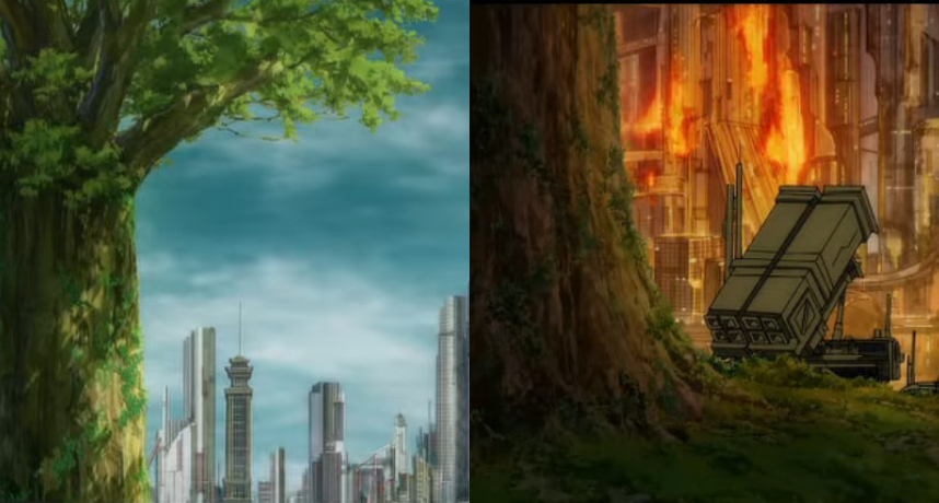 在《進擊的巨人》戰爭後過了上千年,艾連安葬的大樹仍屹立不搖,看著這個世界從高樓的升起,再到戰爭又倒下了眾多的樹木,直到最後帕拉迪島變回雜草叢生的廢墟,艾連所期望沒有巨人的世界,依舊存在著戰爭與分歧。此時有為少年和一隻小狗來到了艾連安葬的大樹前,此時的大樹已變成和尤彌爾發現的樹一模一樣,或許這又會是個獲得巨人之力的輪迴。