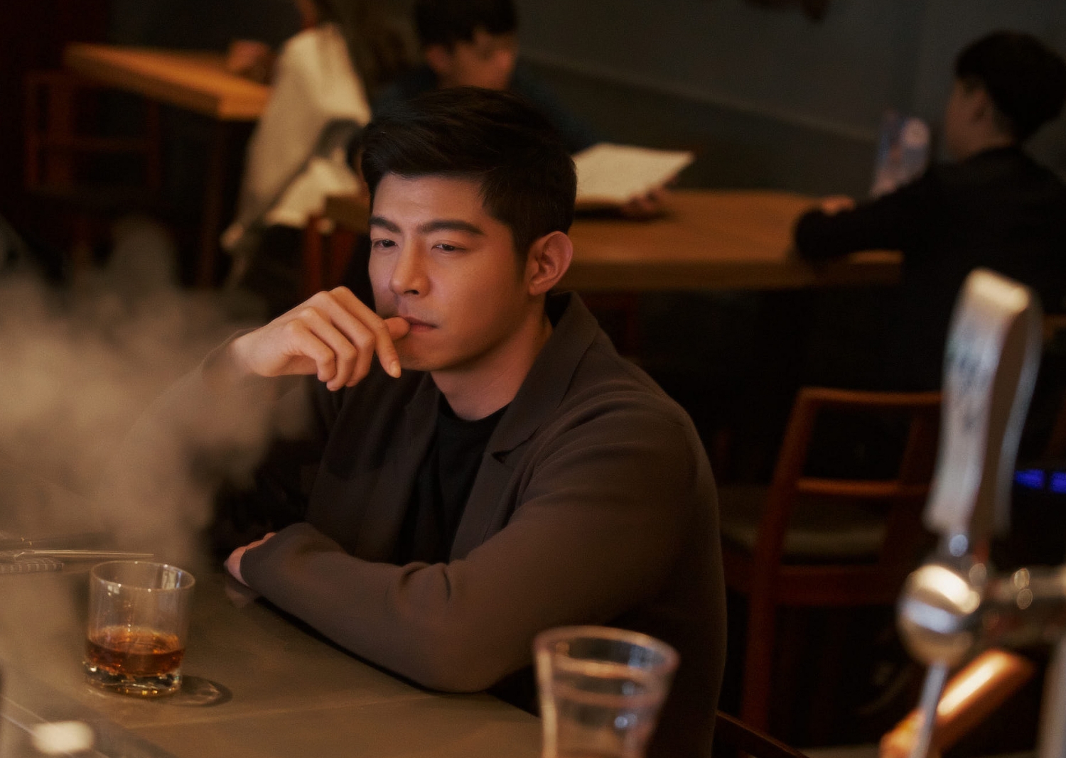 《美食無間》於各大平台皆開收視紅盤,戲裡登場的各式誘人美食更引發網路爆棚討論,甚至每集播出就有粉絲零時差前往餐廳踩點打卡,彷彿成了另類美食指標。在即將上線的第四集裡,劇情也有全新走向,傅孟柏飾演的警察朱坡及王柏傑飾演的殺手黎子東,前幾集總在餐廳意外巧遇,這一集卻刻意讓兩人分開用餐,傅孟柏跟簡嫚書在日式居酒屋吃飯談心,他的眼神一直飄去其他客人身上,同時王柏傑獨自前往酒吧享用威士忌滷肉飯,也不斷看向門口好像期待著某人走進來,營造「他們都在等對方現身」的思緒,讓人看得心癢癢,反倒這場戲讓簡嫚書賺到,她笑說:「那天在居酒屋吃得超過癮!我超愛吃烤雞軟骨,那天就一直點這道來吃。」