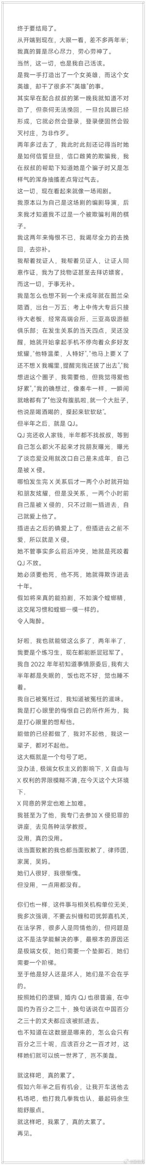 都美竹的寫手「貓世霖」20日在微博發文,再度提及都美竹說謊的事情,他表示:「是我一手打造出了一個女英雄,而這個女英雄,卻幹了很多不『英雄』的是。」直言都美竹當時滿口謊言,後來才發現自己被利用,還表示:「我這兩年來悔恨不已。」這段時間為了找證人到處奔波,但還是於事無補。