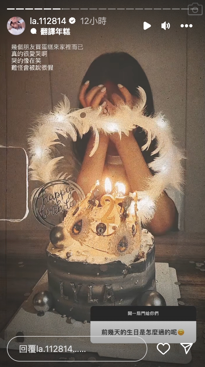 由於事發後沒幾天就是蕾菈的生日,被問到是如何度過,她曬出當晚慶生的影片,只見畫面中,蕾菈不斷擦眼淚,朋友則在一旁安慰,她表示:「幾個朋友買蛋糕來家裡而已,真的很愛哭啊,哭得像在笑,難怪會被說很假。」