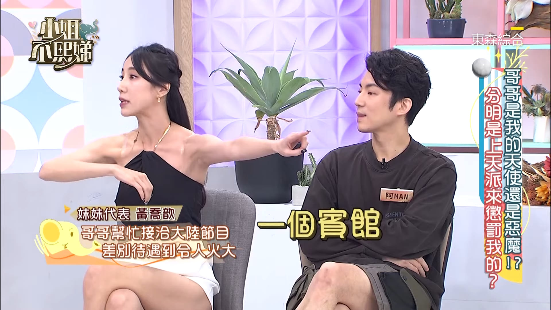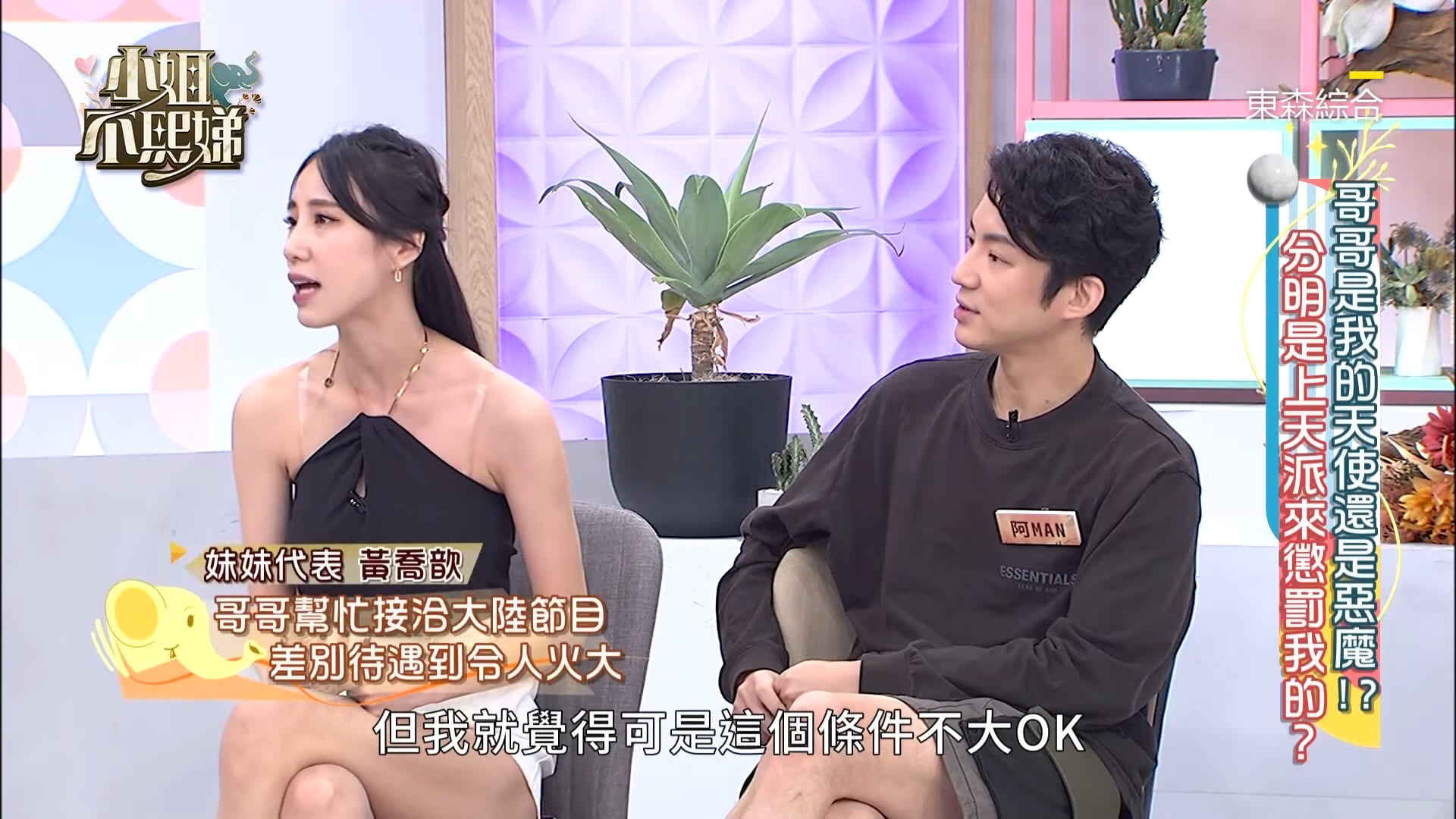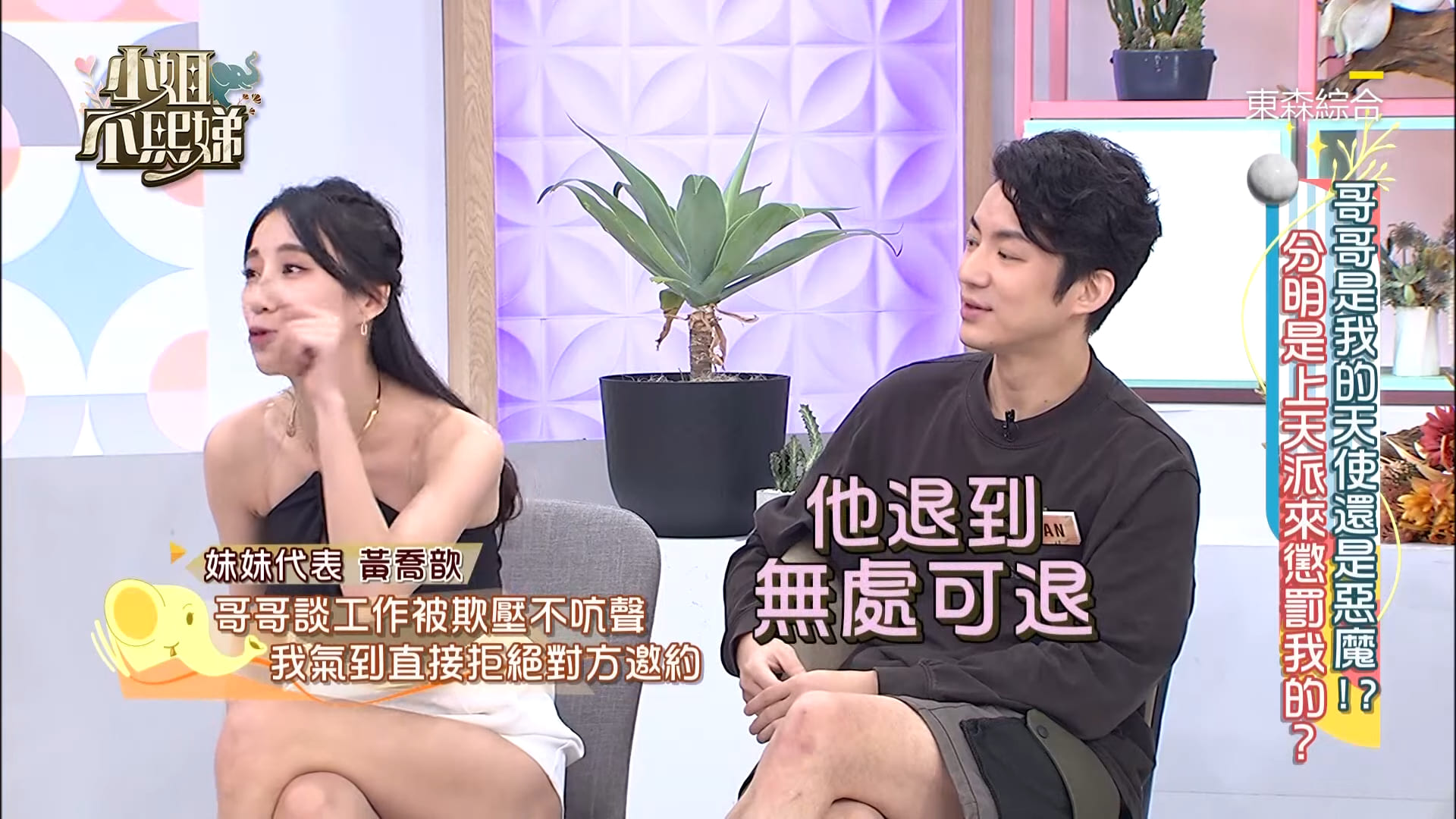 黃喬歆透露哥哥幫忙接洽工作的時候很沒底線,明明一開始都已經談好,但是當對方臨時提出新的要求時,哥哥竟然還會答應,讓她很傻眼,認為哥哥已經退讓到「無處可退」,阿Man則解釋:「心裡會有個底,不要退到那邊之前。」對此,黃喬歆加碼爆料曾發生過一件事情讓她超生氣。