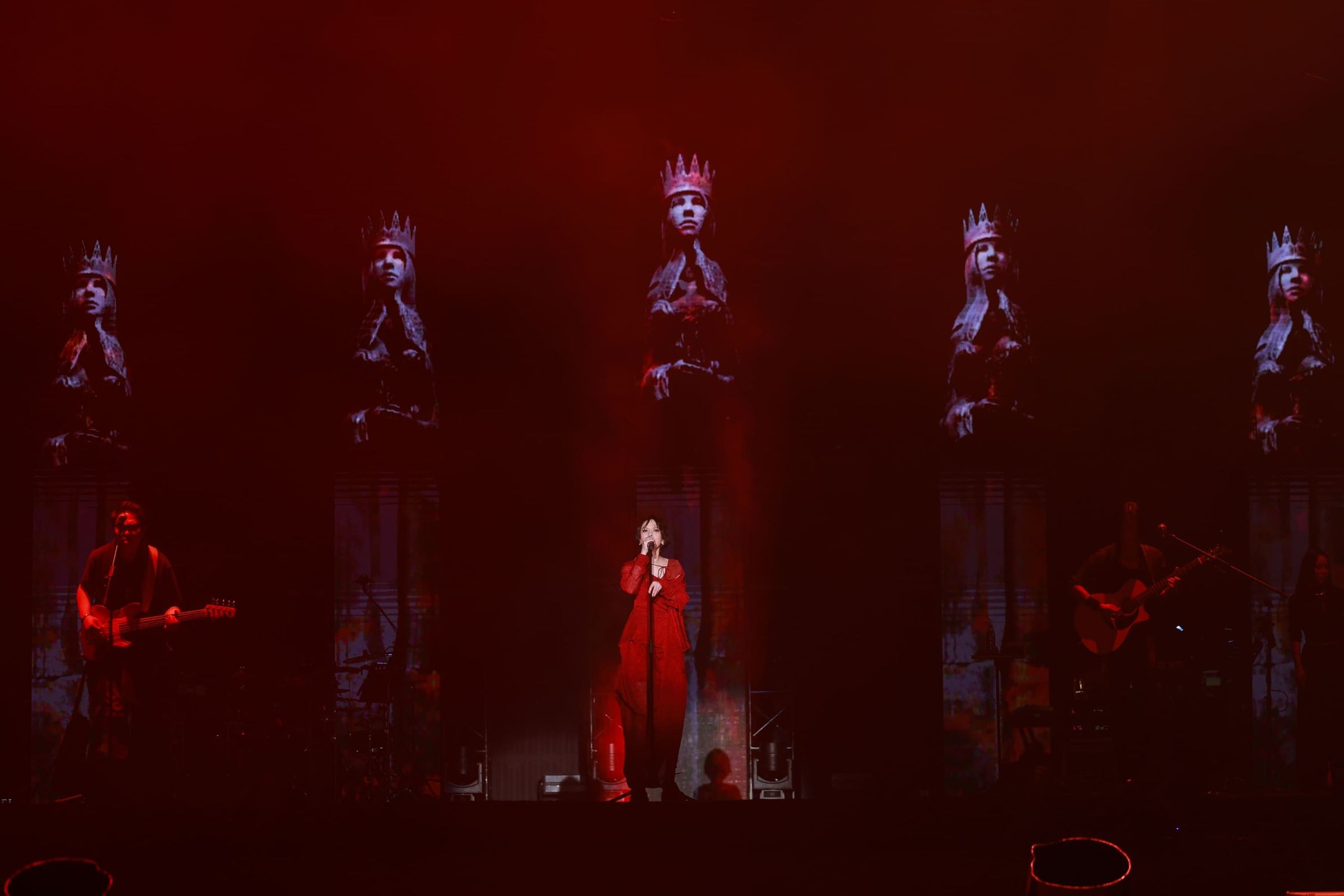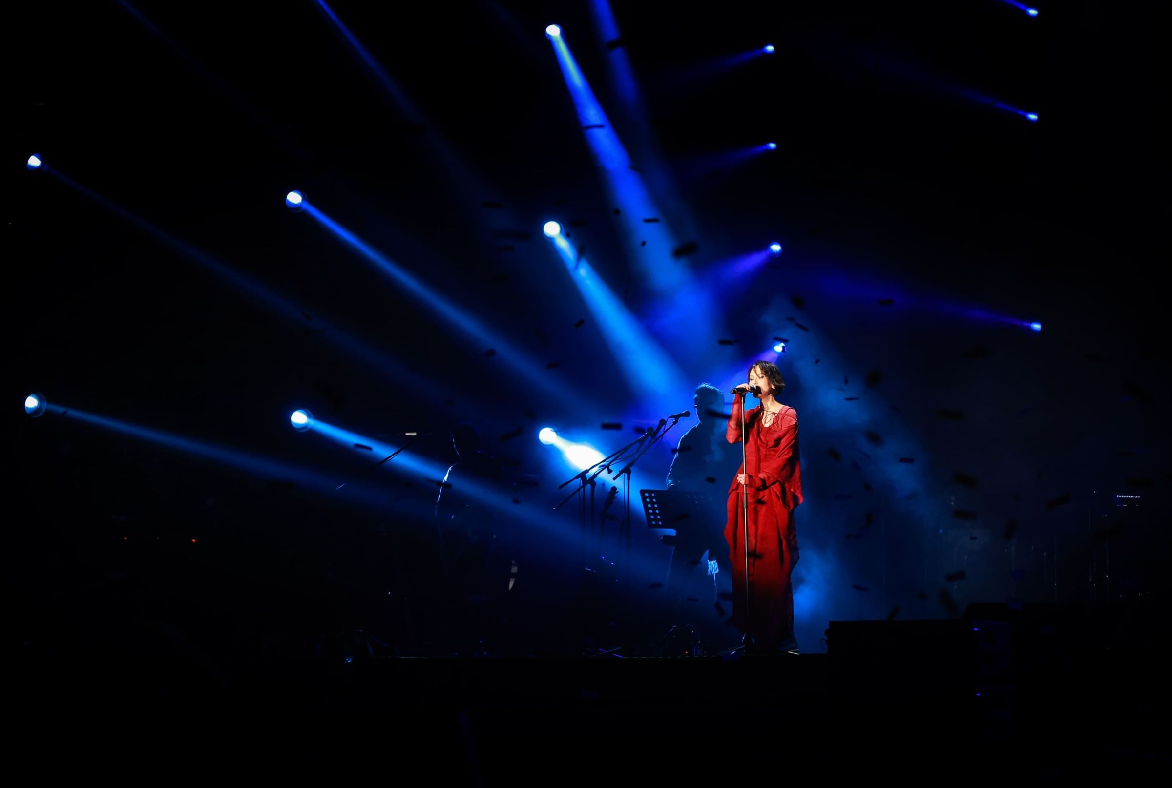 緊接著的抒情歌段落,沉靜的光束打在楊乃文身上, 在強烈的光與影對比中,她娓娓唱出〈離心力〉、〈祝我幸福〉、〈 你就是吃定我〉,氛圍感性又動人。唱完歌後, 楊乃文已經想不到與歌迷聊天的話題, 笑說自己的狀態與接下來的歌曲很像,接著唱起了〈思緒的盡頭〉、 〈Flow〉、〈Silence〉、〈說不出口〉, 只見雷射光束四起,觀眾全都高舉紅色螢光棒隨音樂共舞、合唱。